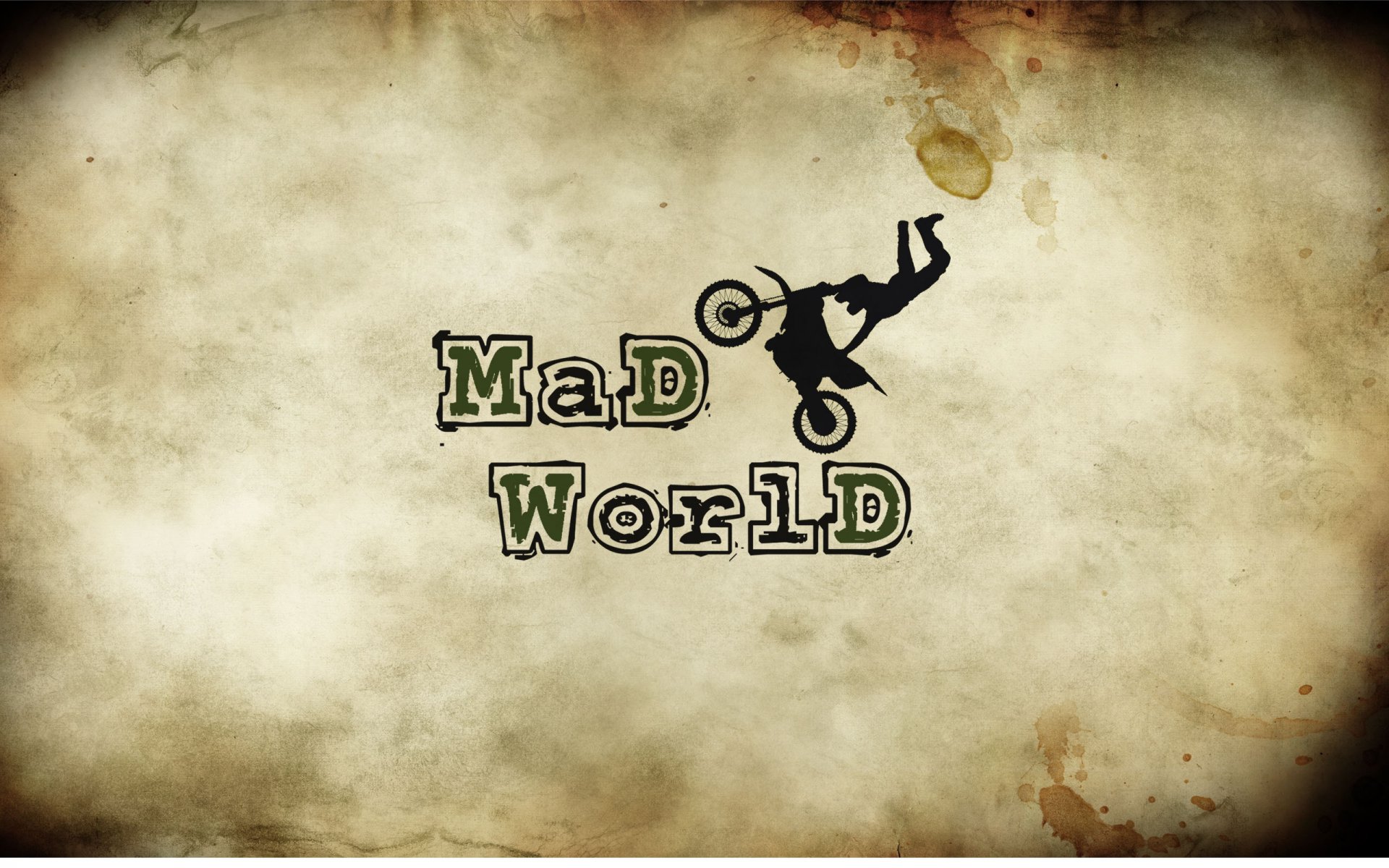 Image d'un homme debout sur ses mains sur une moto avec l'inscription "monde Fou"