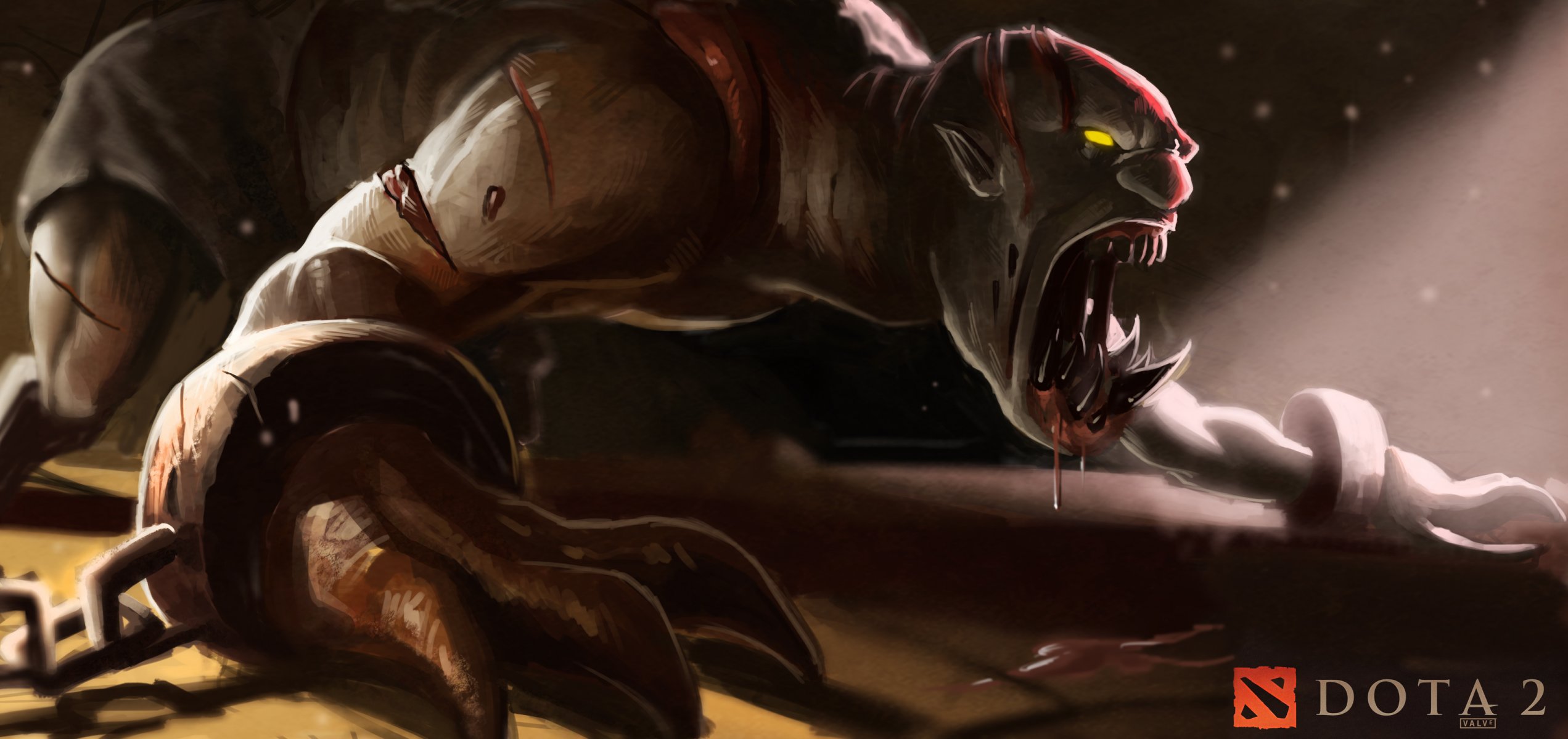 Un monstre à dents menotté dans un jeu d'ordinateur