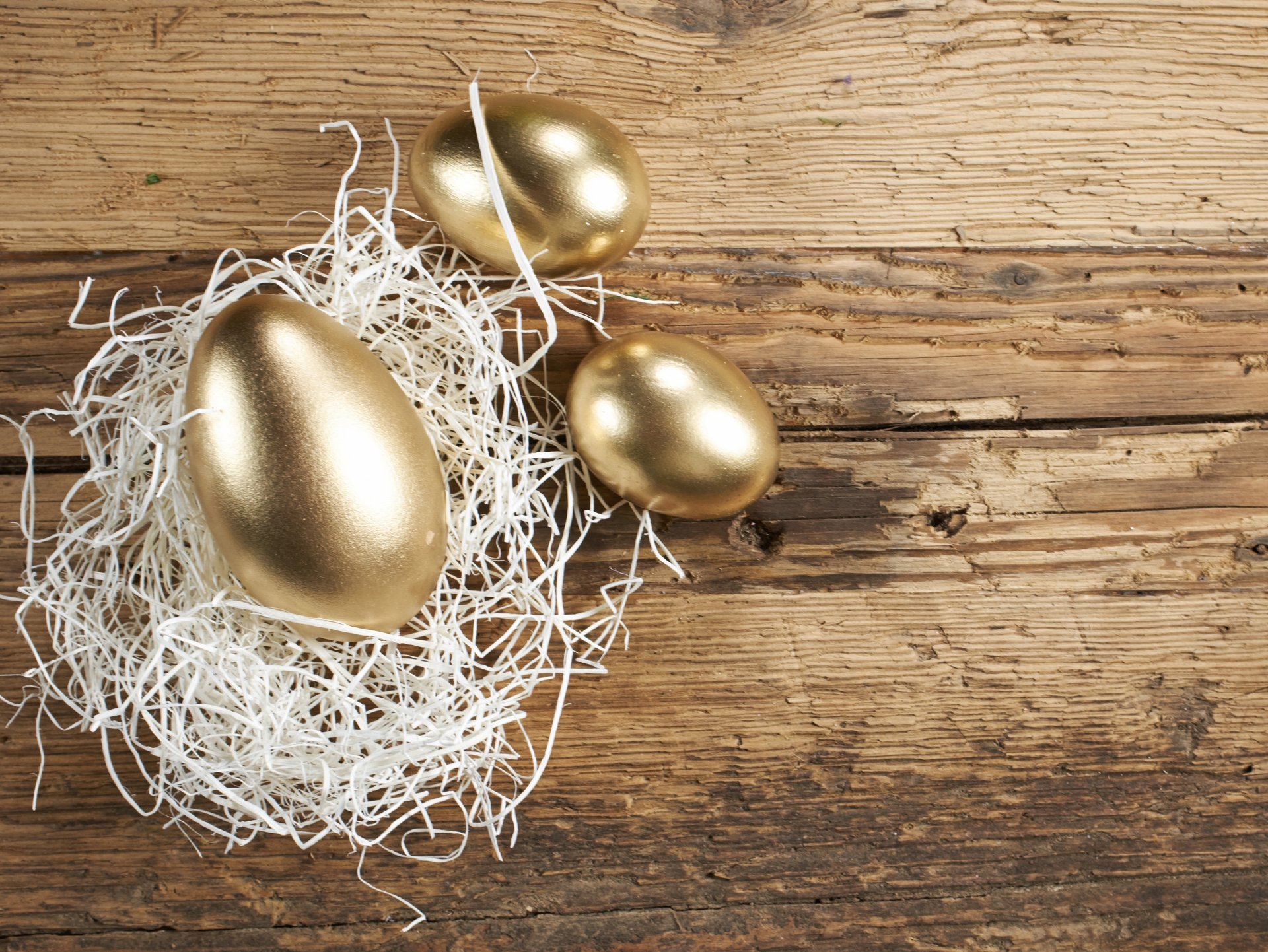 Oeufs d'or sur fond en bois