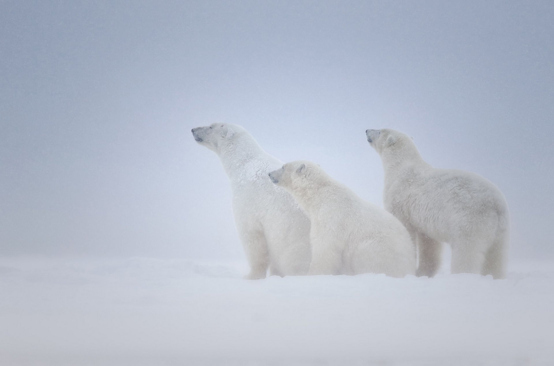 Collage d'ours polaires dans les montagnes avec un ciel étoilé