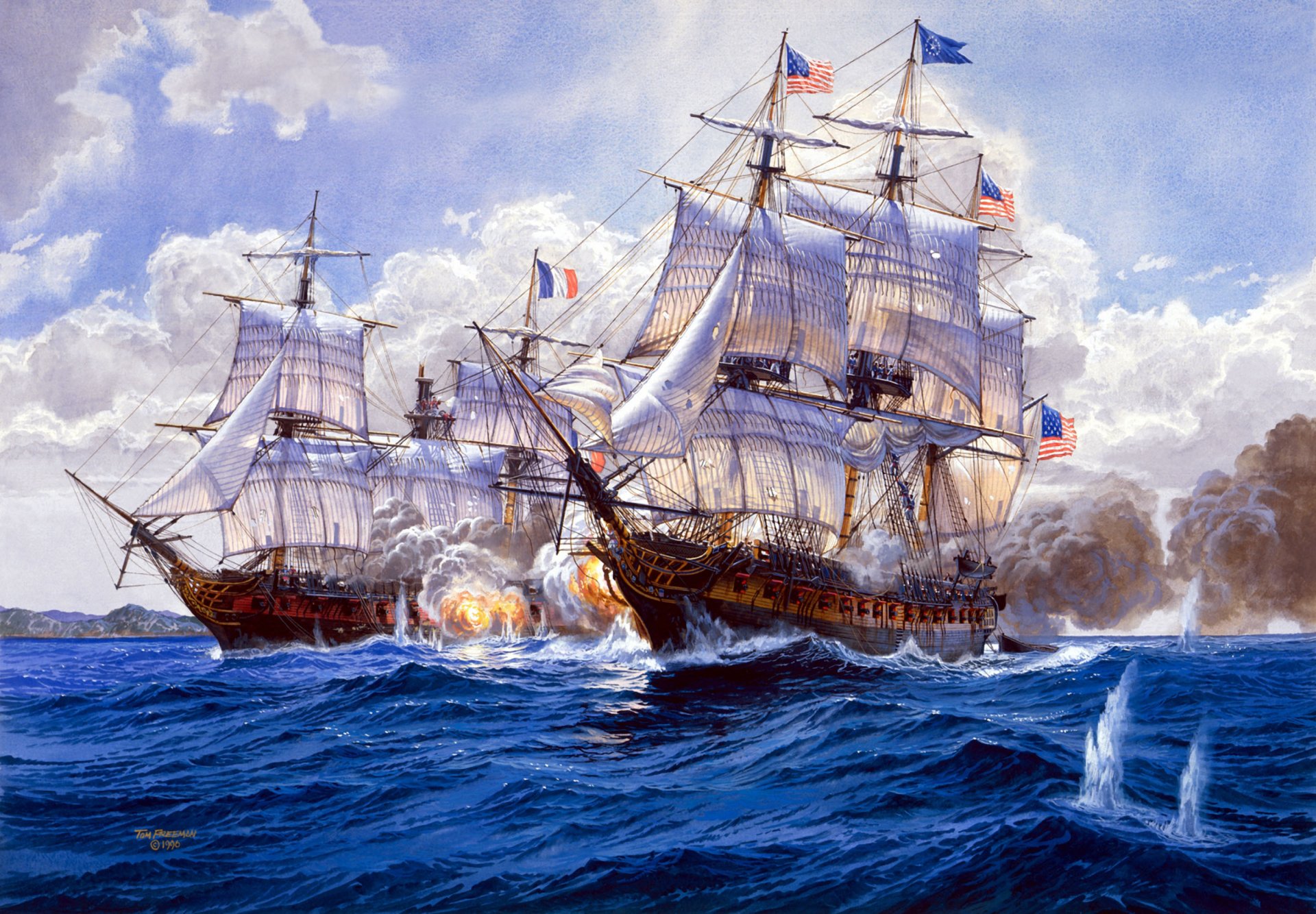 Navires avec des armes, destroyer ddg-100, destroyer, uss kidd, navire en patrouille en campagne, en haute mer avec l'horizonNavires avec des armes, destroyer ddg-100, destroyer, USS Kidd, navire en patrouille en campagne, en haute mer avec l'horizon
