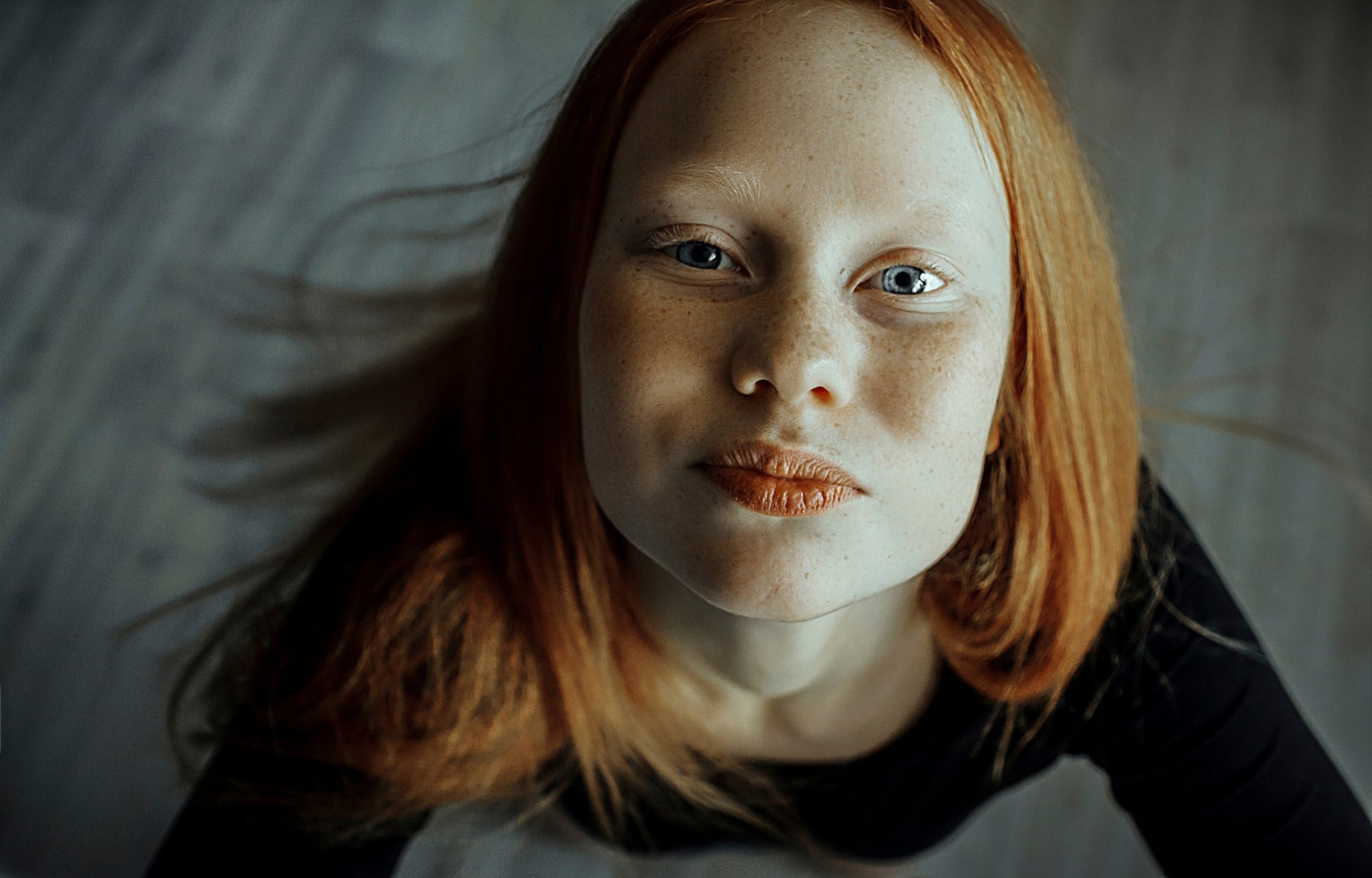 Portrait d'une jeune fille blonde avec un regard d'appréciation