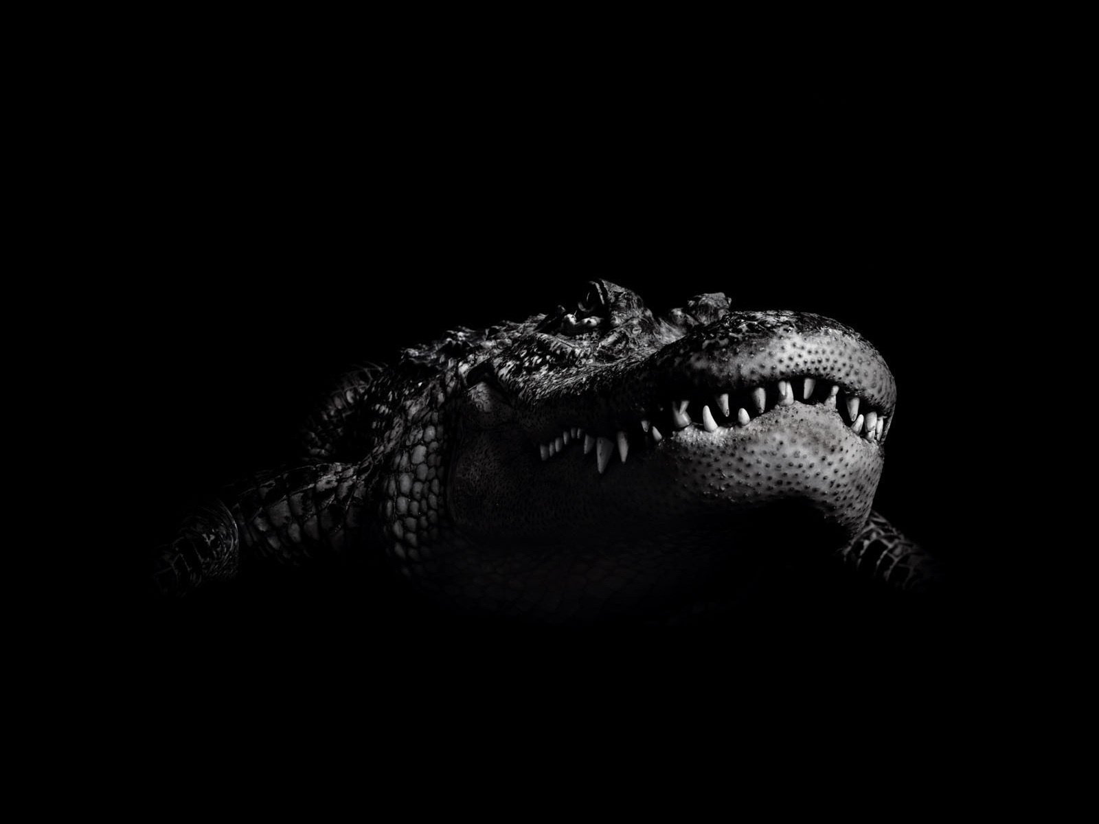 Crocodile noir et blanc de l'obscurité