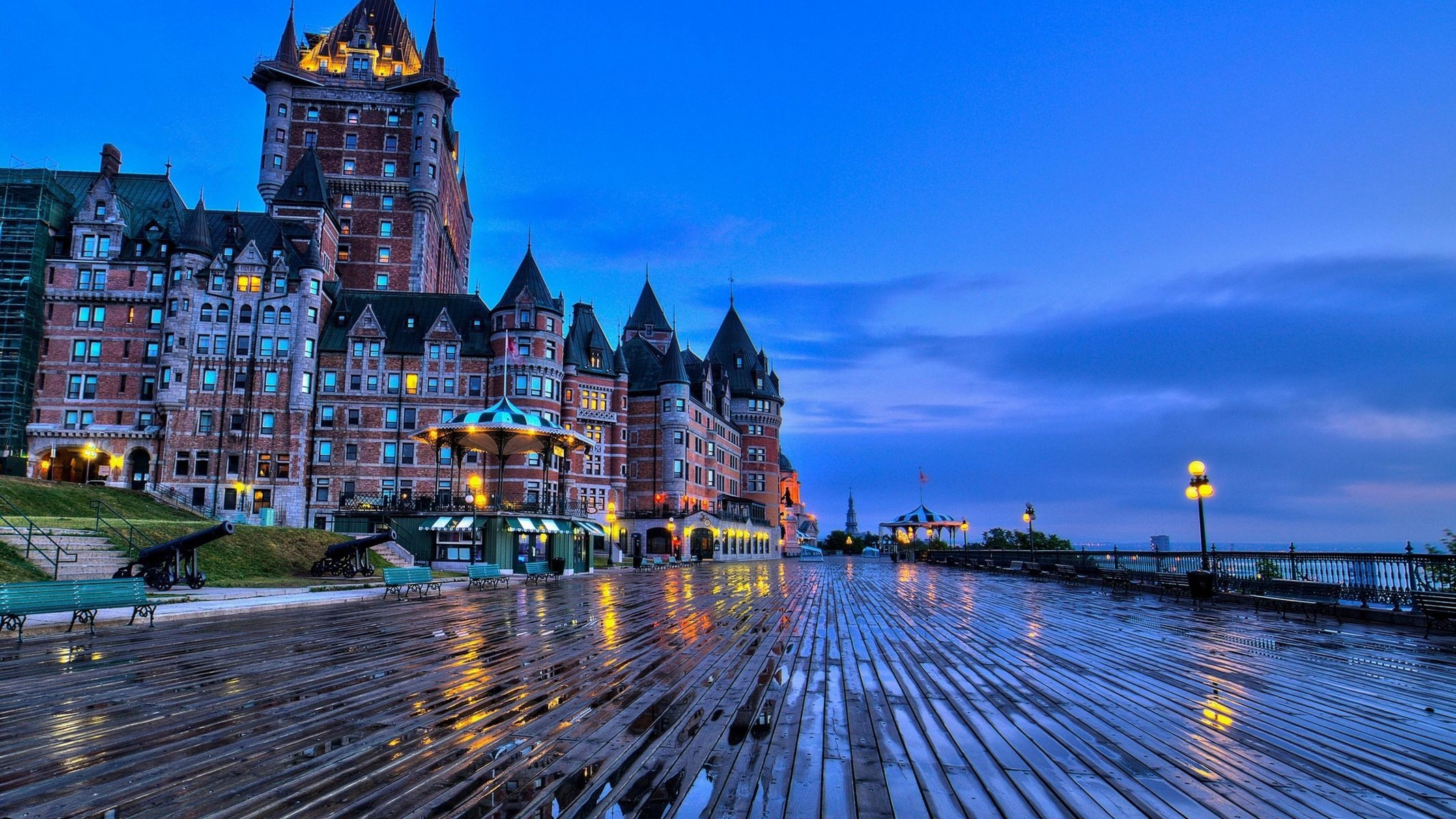 Promenade du matin après la pluie, lumières allumées
