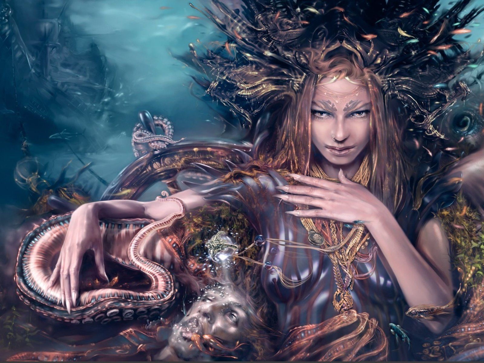 Dessin animé sur la maîtresse de la mer au fond du genre SPRUT Fantasy
