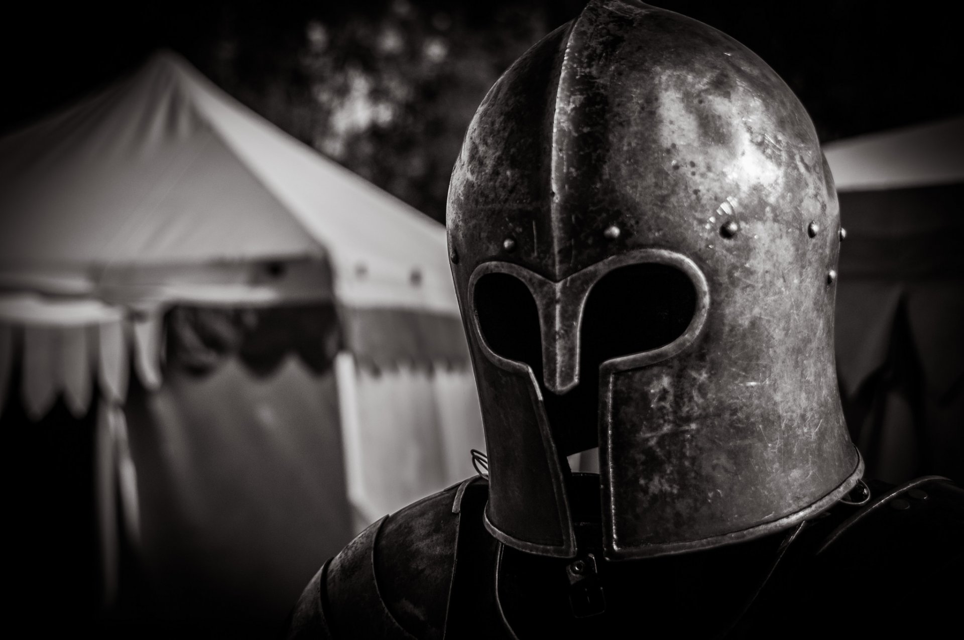 Chevalier en armure dans un camp de tentes