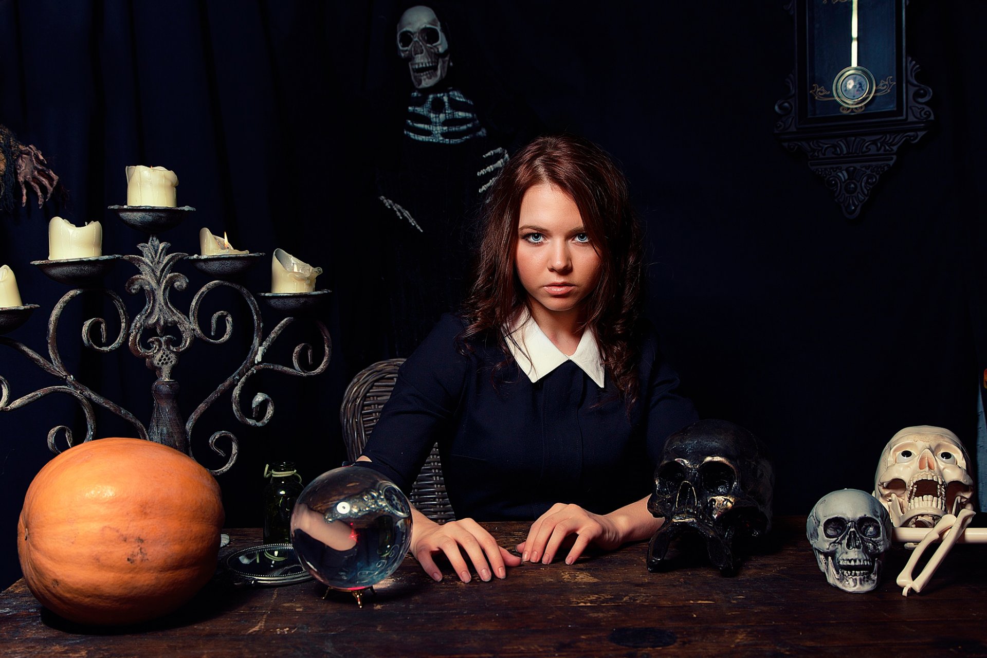Une diseuse de bonne aventure dans la tension fonctionne avec la boule