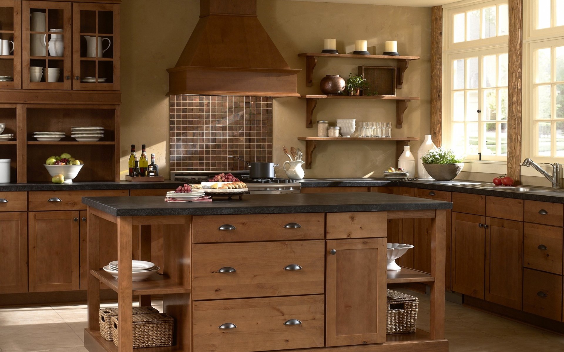 L'intérieur de la cuisine met en valeur les meubles confortables