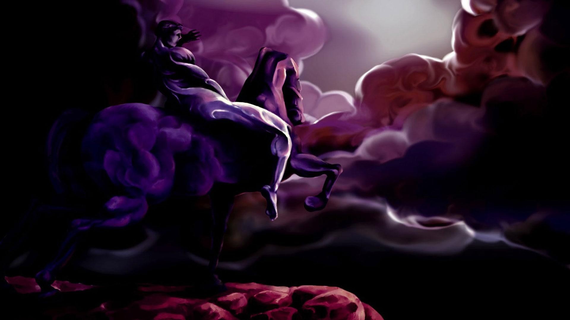 Le cavalier sur le cheval se précipite dans l'inconnu