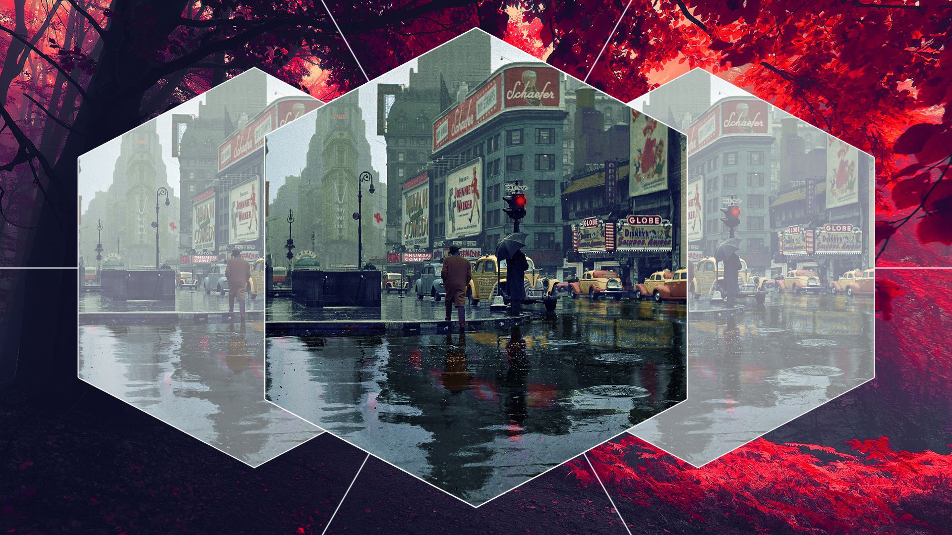 Dans l'hexagone, la pluie d'automne dans la rue avec les gens qui marchent et les voitures qui roulentDans l'hexagone, la pluie d'automne dans la rue avec les gens qui marchent et les voitures qui roulent