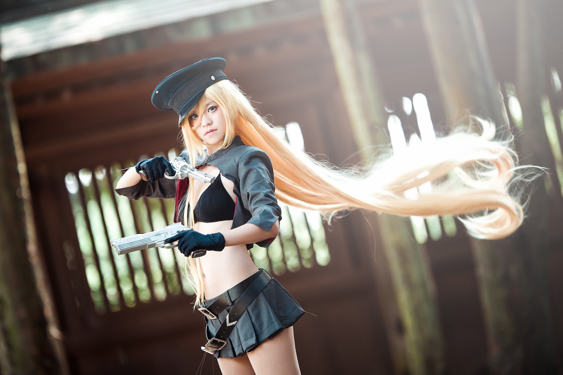 Photo d'une fille agressive avec des armes à la main