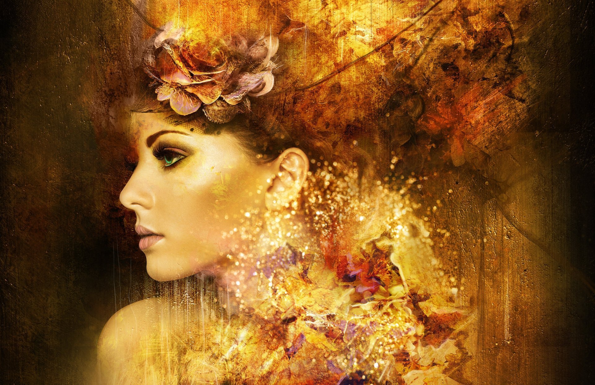 Abstraction d'art avec le visage de la fille dans le profilAbstraction d'art avec le visage de la fille dans le profil