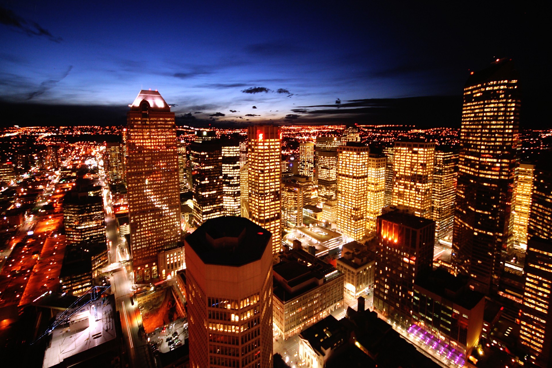Les lumières des gratte-ciel illuminent la ville nocturneLes lumières des gratte-ciel illuminent la ville nocturne