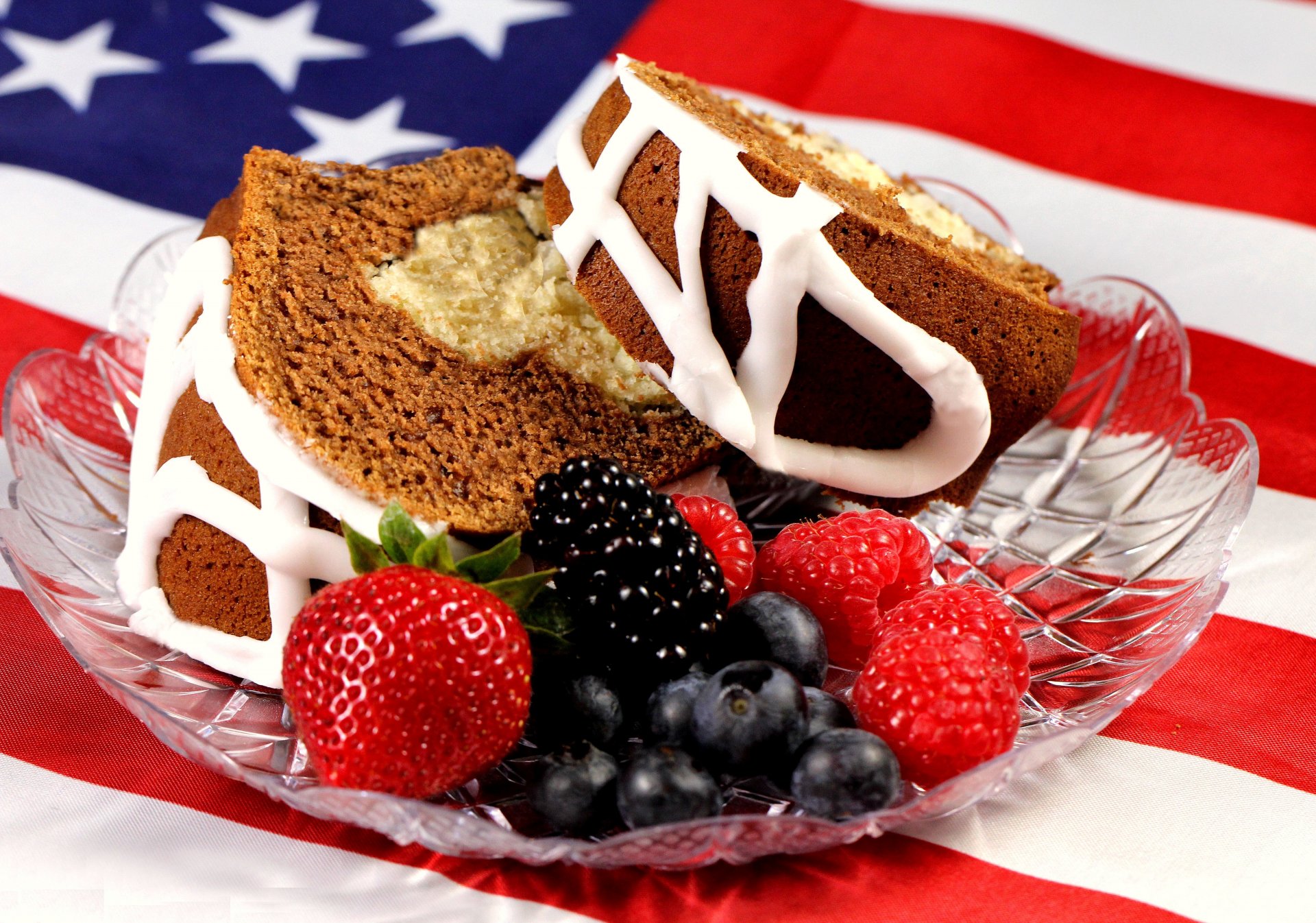 Deux morceaux de gâteau aux baies dans un vase en cristalDeux morceaux de gâteau aux baies dans un vase en cristal