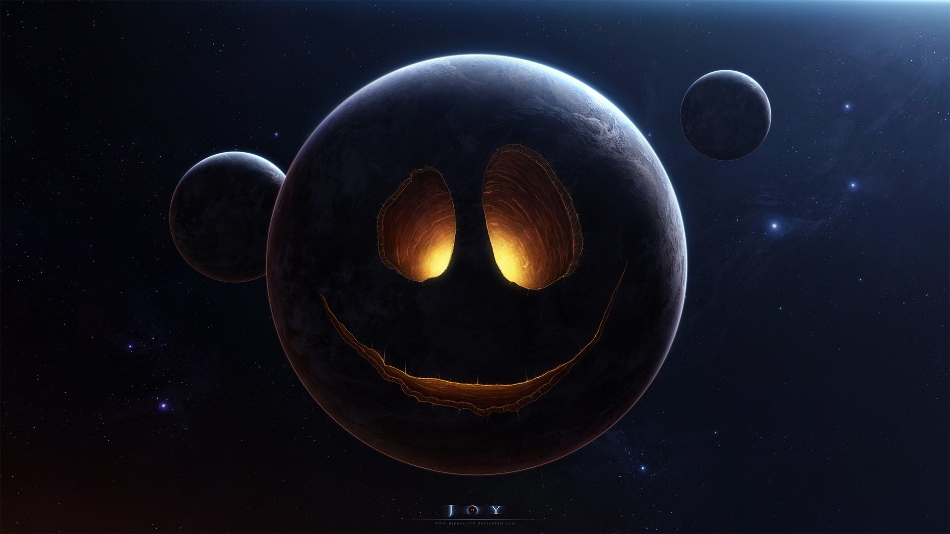 Planète sombre avec un satellite artificiel