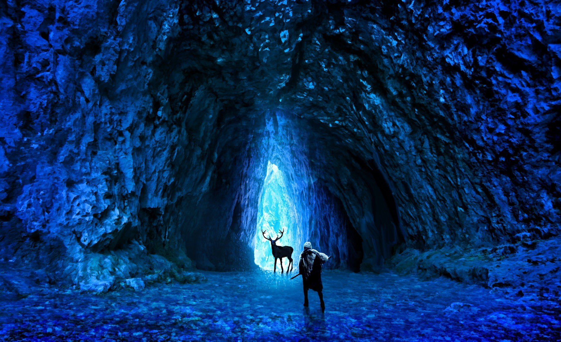Loup de conte de fées avec des bois de cerf parmi les gratte-ciel en ruineLoup de conte de fées avec des bois de cerf parmi les gratte-ciel en ruine