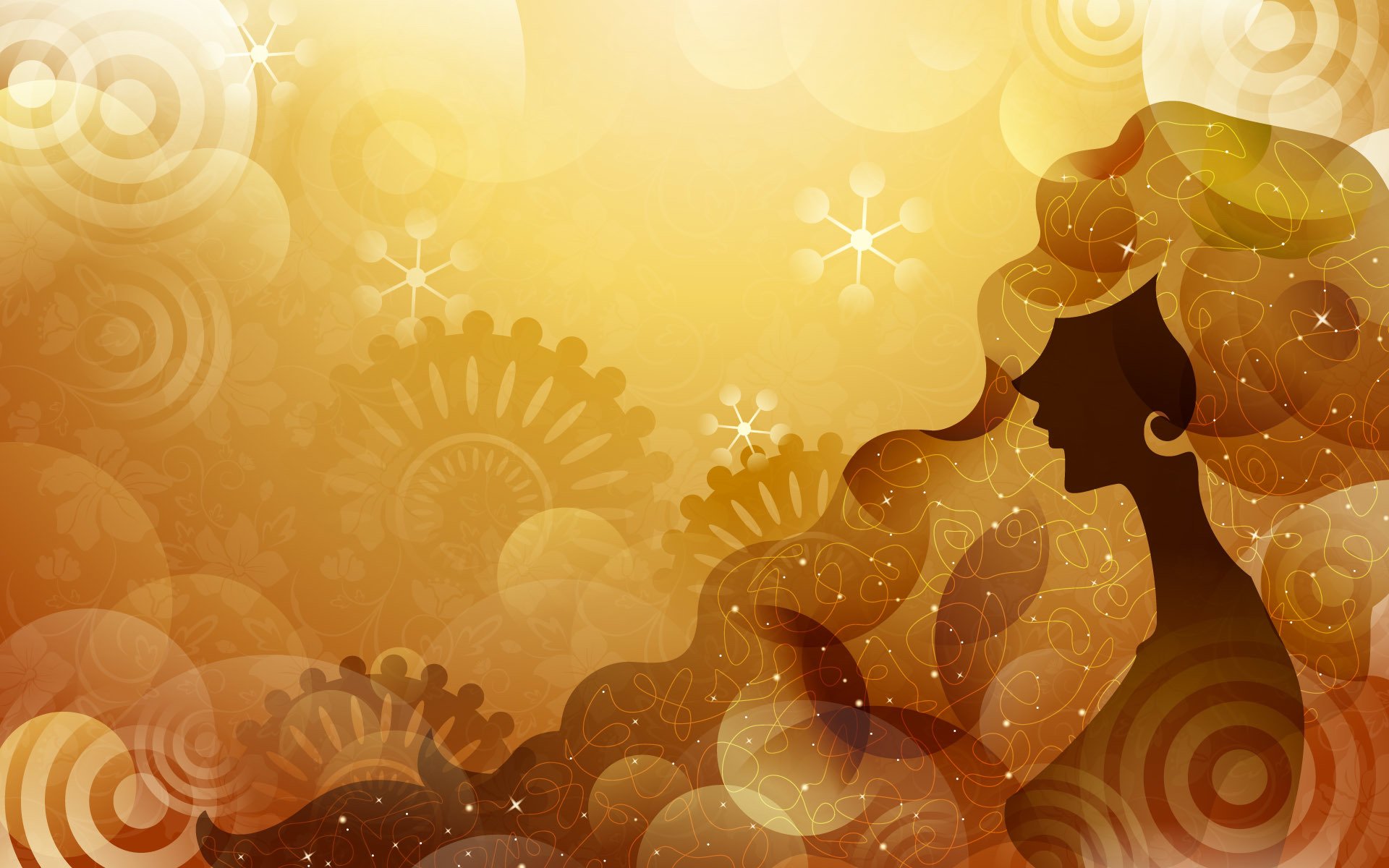 Carte de voeux d'art dijital avec la silhouette d'une fille aux cheveux étincelants