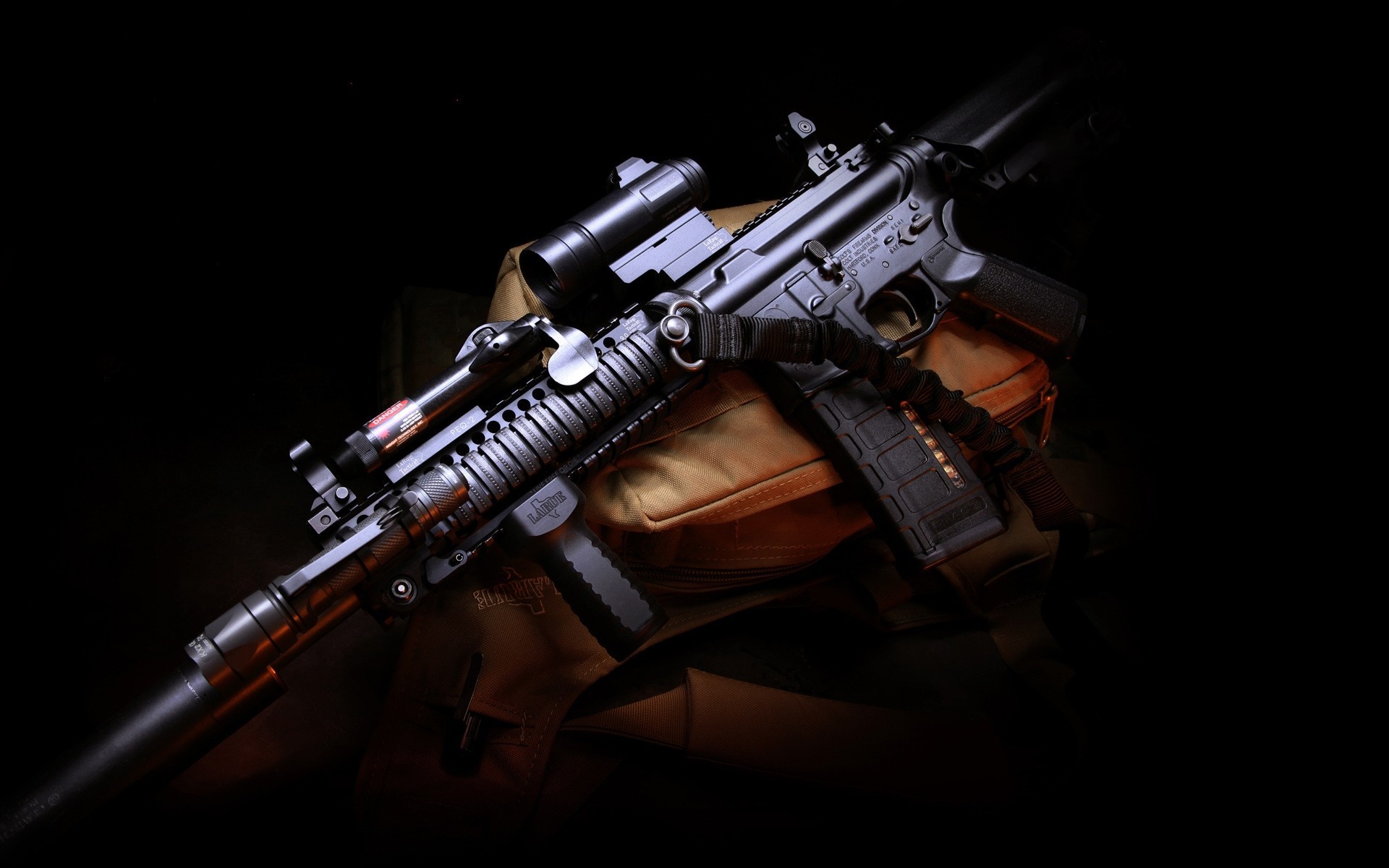AR-15 fusil d assaut de couleur noire sur fond de bois