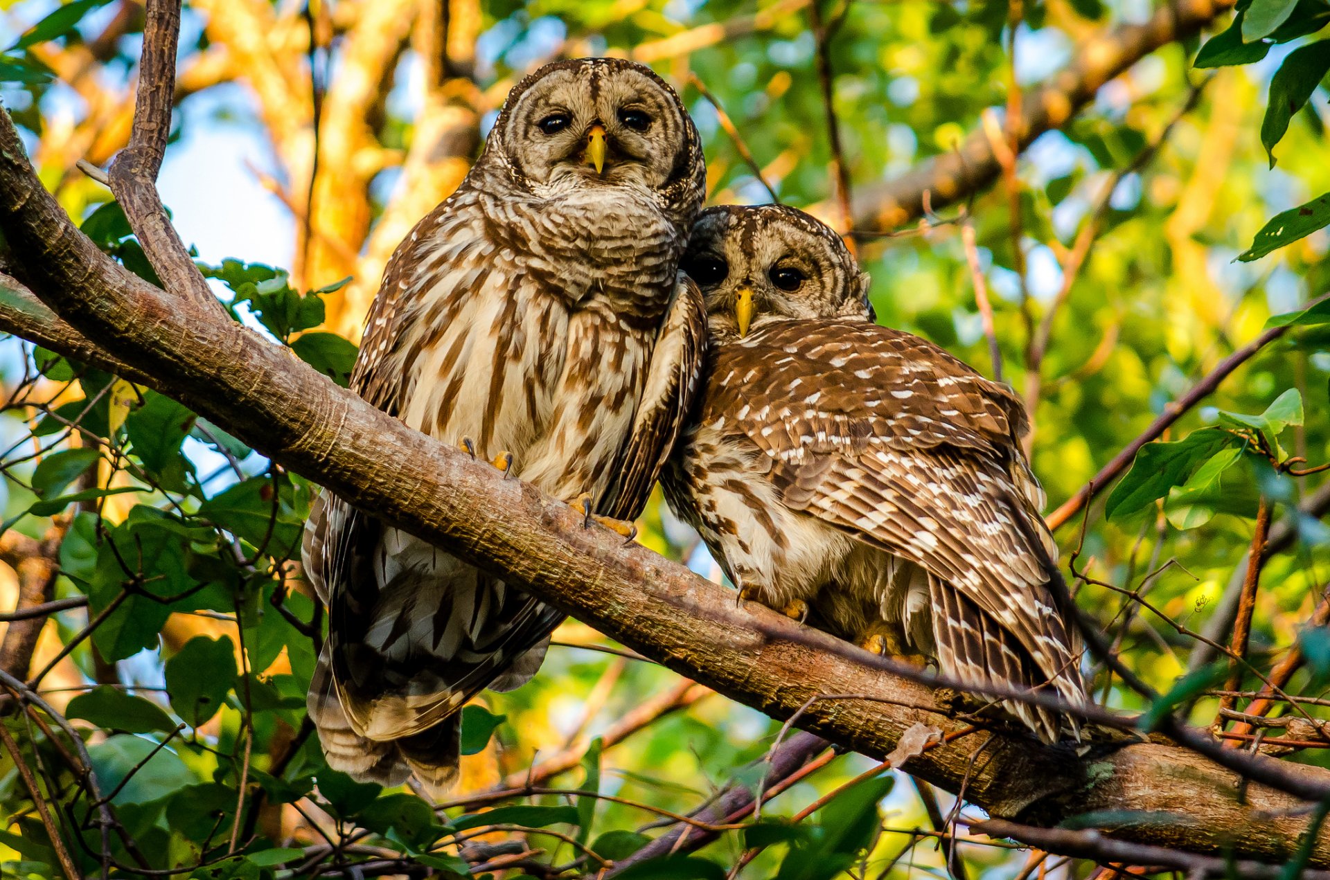 Photo de fantaisie, deux hiboux assis sur une branchePhoto de fantaisie, deux hiboux assis sur une branche