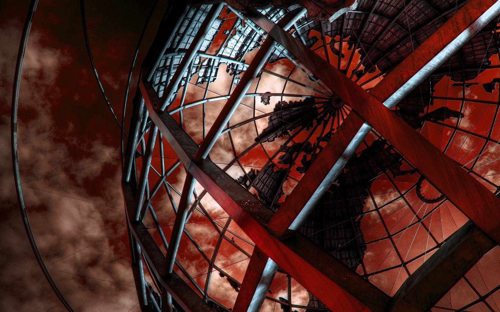 Maquette de la planète de la grille sur fond de nuages rougesMaquette de la planète de la grille sur fond de nuages rouges
