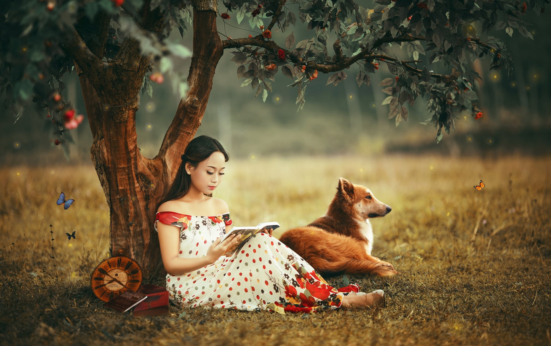 Un renard corné et un garçon avec un brynchalka sur la neigeUn renard corné et un garçon avec un brynchalka sur la neige