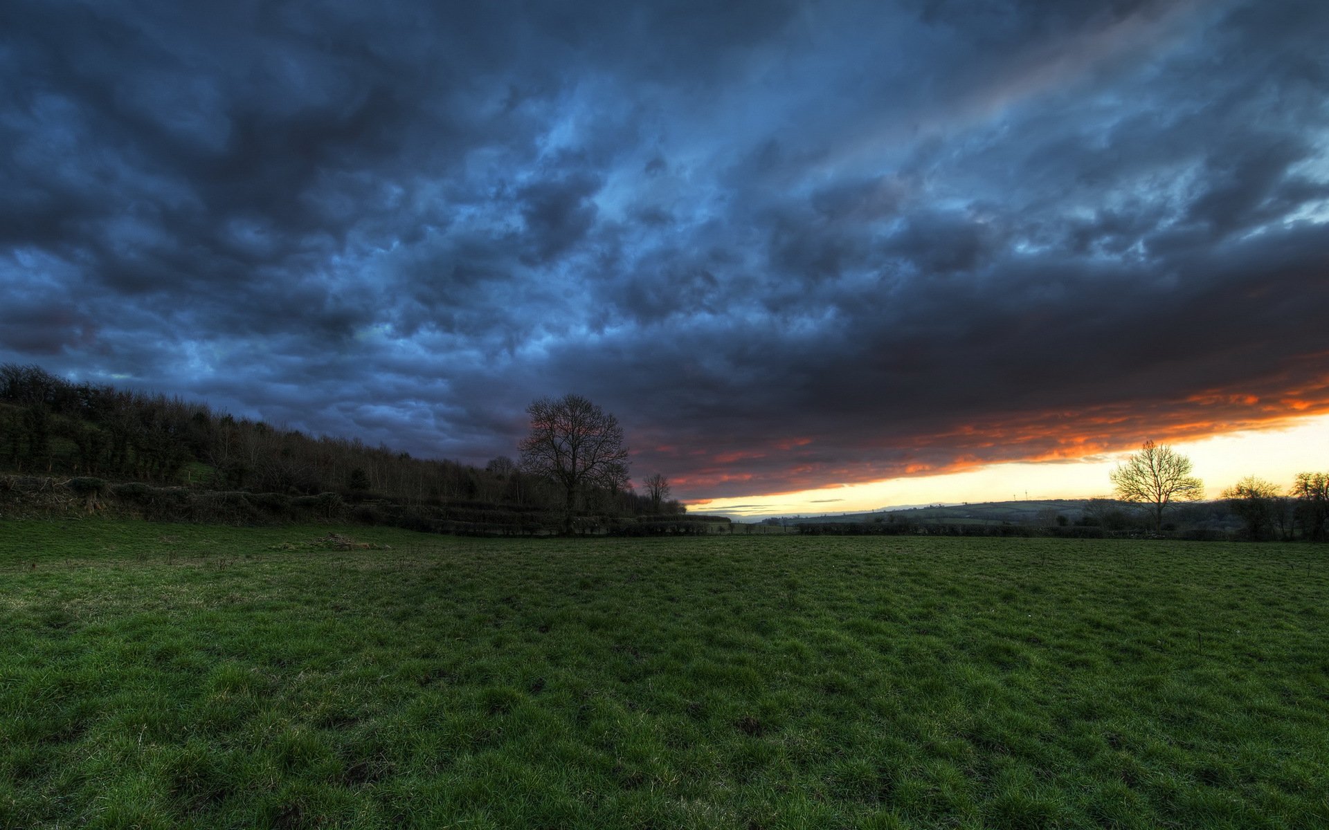 Champ vert couvert d'herbe basse avec vue sur la collineChamp vert couvert d'herbe basse avec vue sur la colline