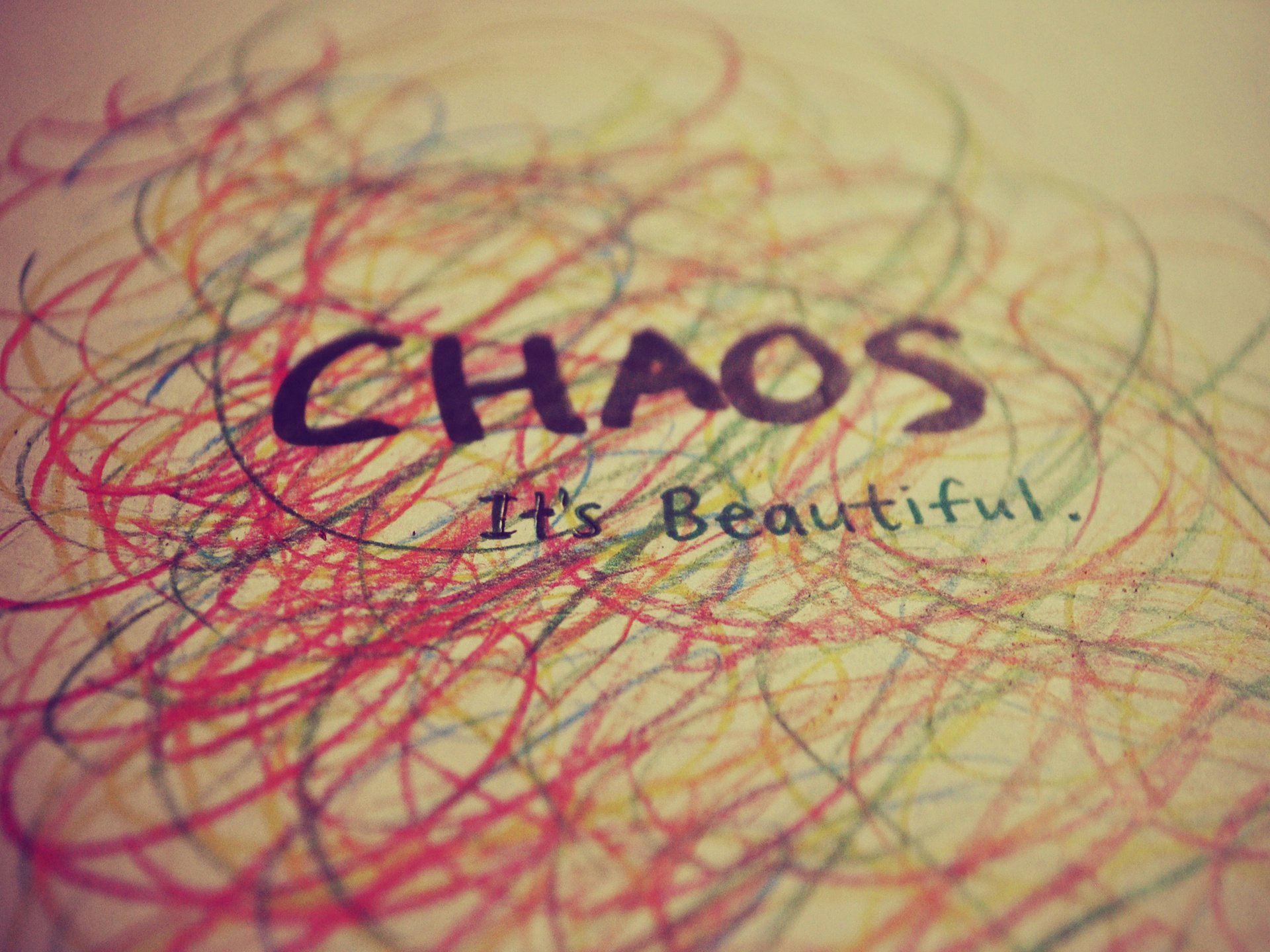 L'Inscription " Chaos. It's beautiful " parmi les lignes multicolores
