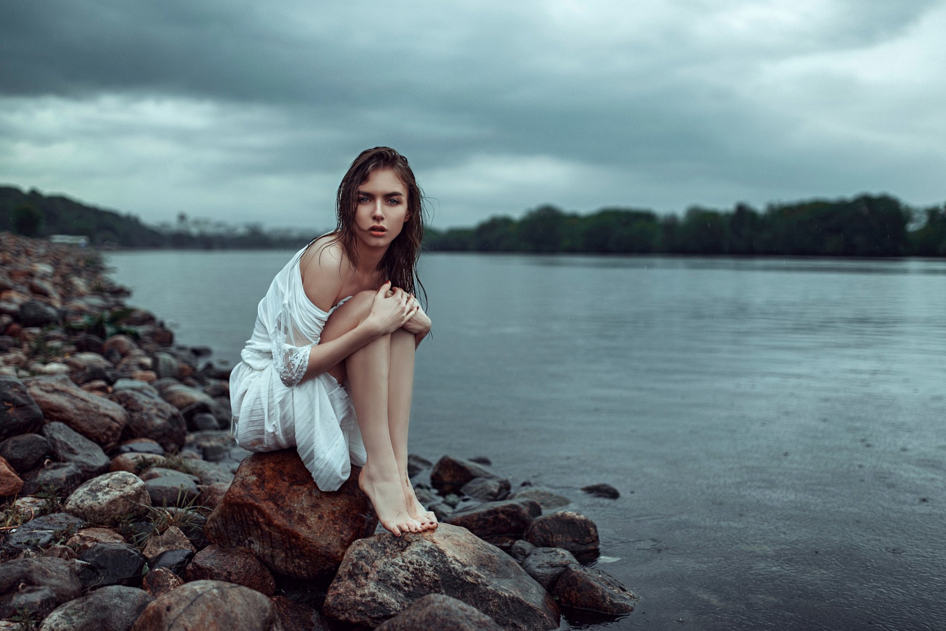 La jeune fille au chapeau se cachait dans les arbresLa jeune fille au chapeau se cachait dans les arbres