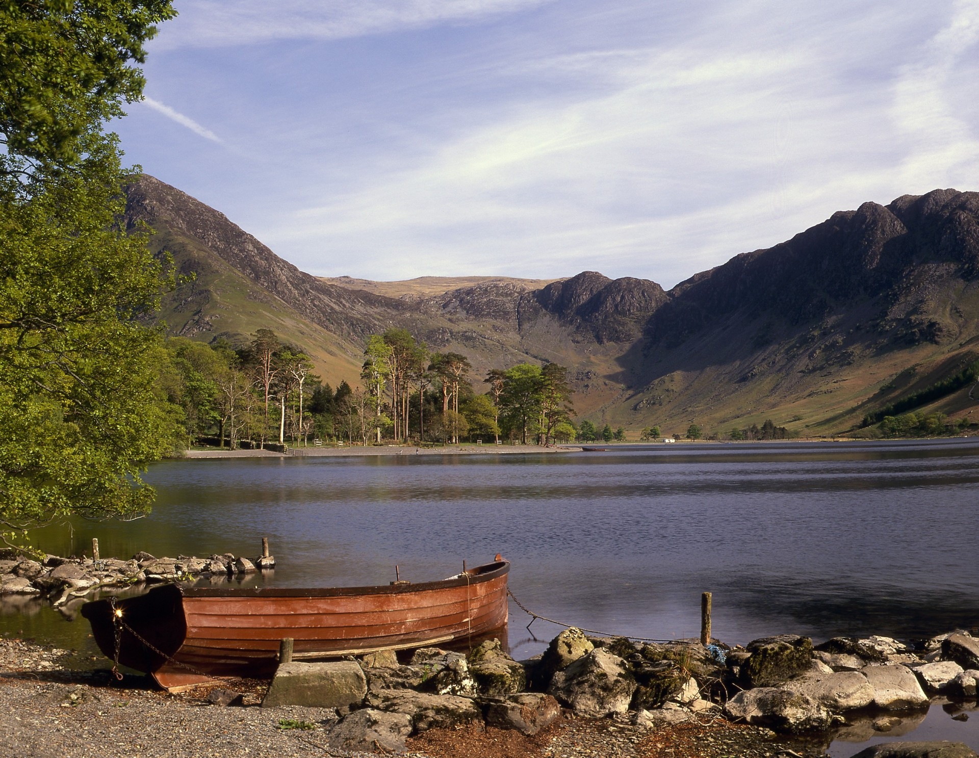 Un photographe au bord du lac filme un coucher de soleil dans les montagnesUn photographe au bord du lac filme un coucher de soleil dans les montagnes
