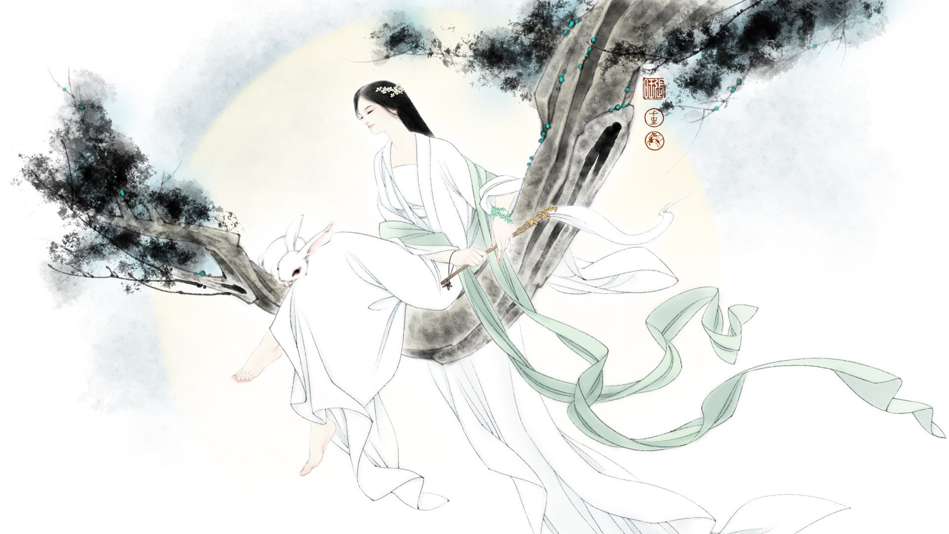Dessin d'une jeune fille japonaise en kimono blanc assis sur une branche d'arbreDessin d'une jeune fille japonaise en kimono blanc assis sur une branche d'arbre