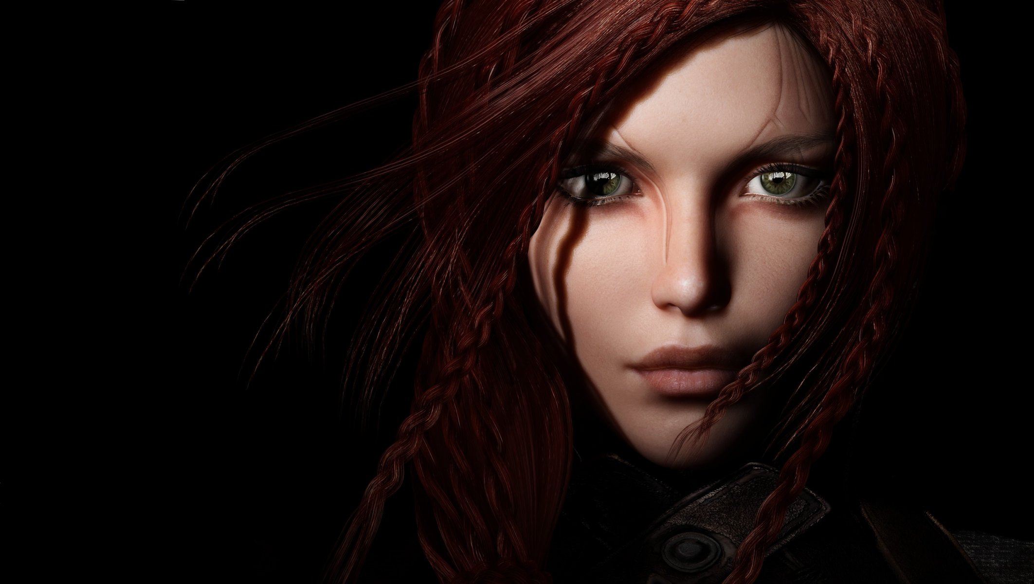 La jeune fille sur un fond sombre. les cheveux longsLa jeune fille sur un fond sombre. Les cheveux longs