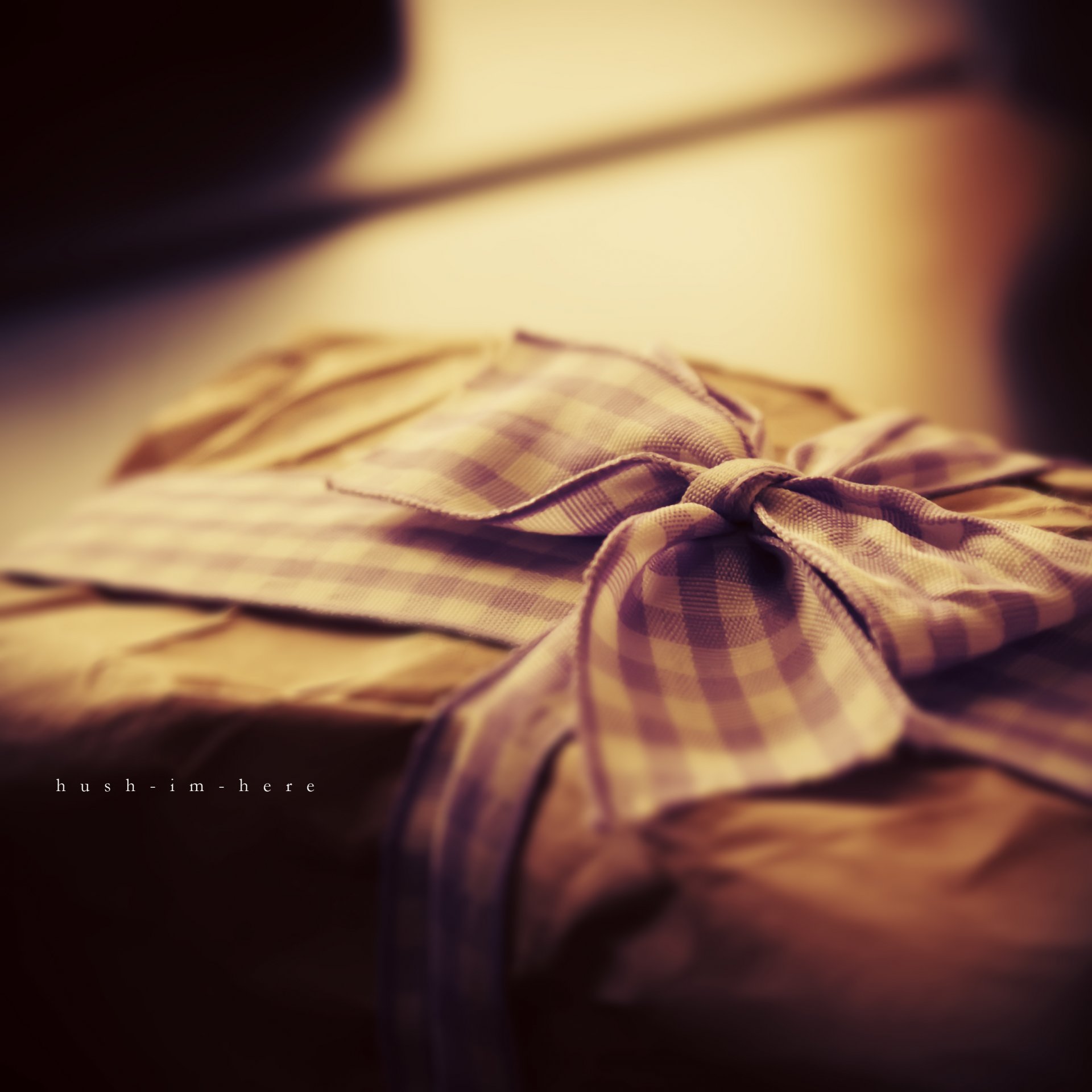 Boîte cadeau macro de couleur verte avec des monogrammes blancs et ruban de satin gris orné de cônes et un arc transparent blancBoîte cadeau macro de couleur verte avec des monogrammes blancs et ruban de satin gris orné de cônes et un arc transparent blanc