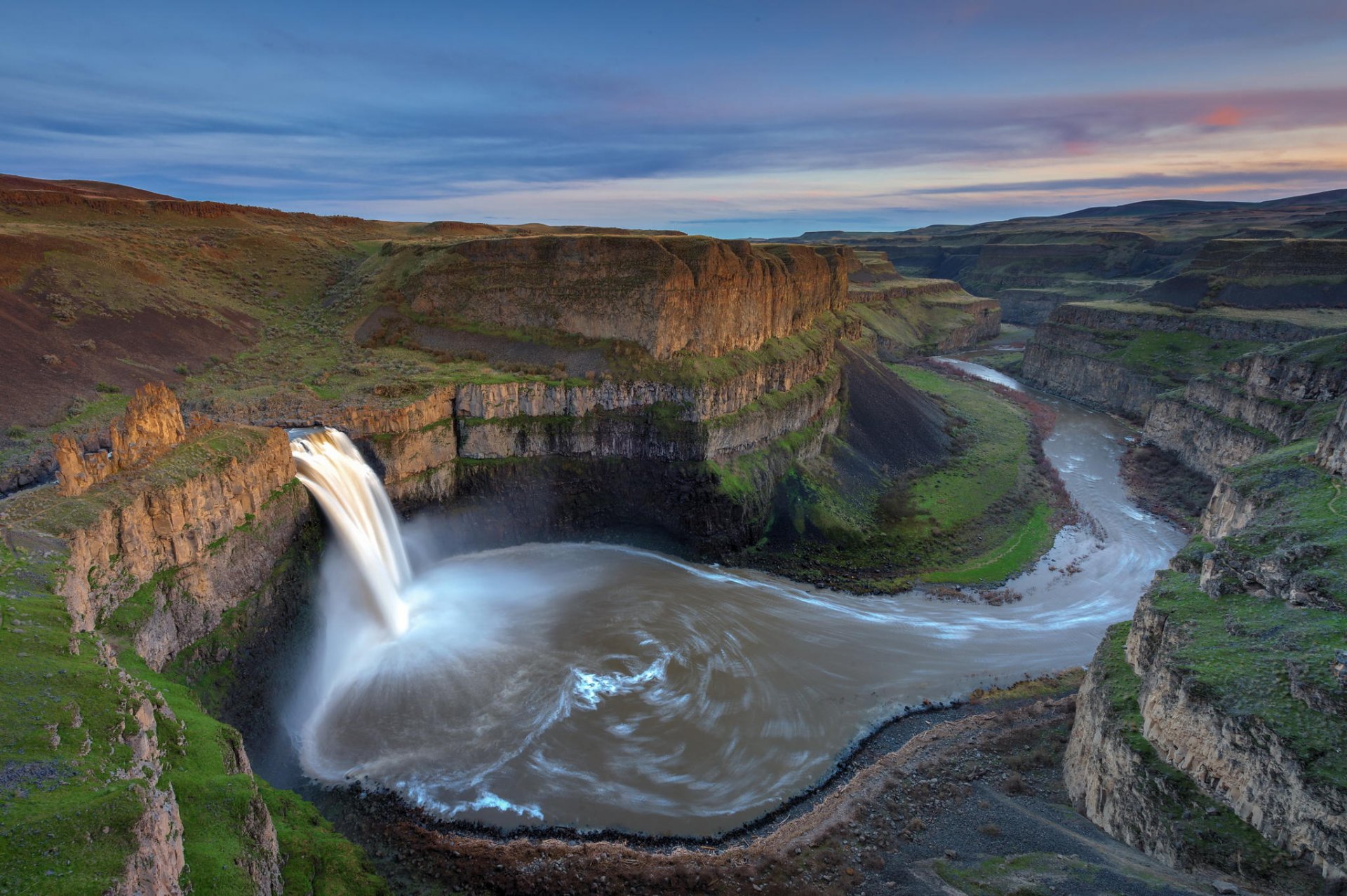 Cascade parmi les pierres et l'herbe dans les montagnes