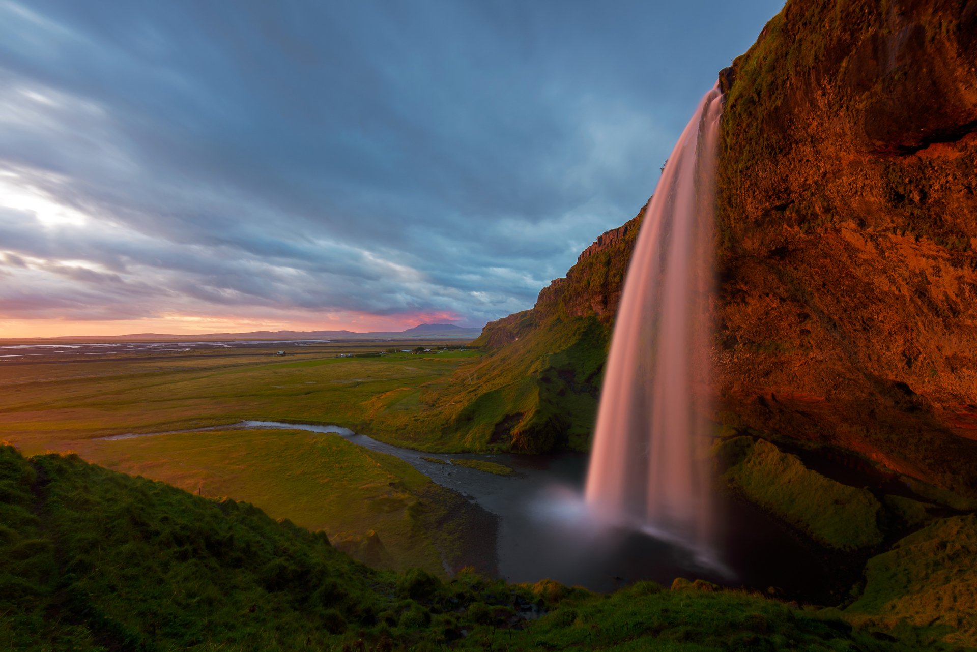 Photo de qualité d'une cascade sur fond de paysage vertPhoto de qualité d'une cascade sur fond de paysage vert