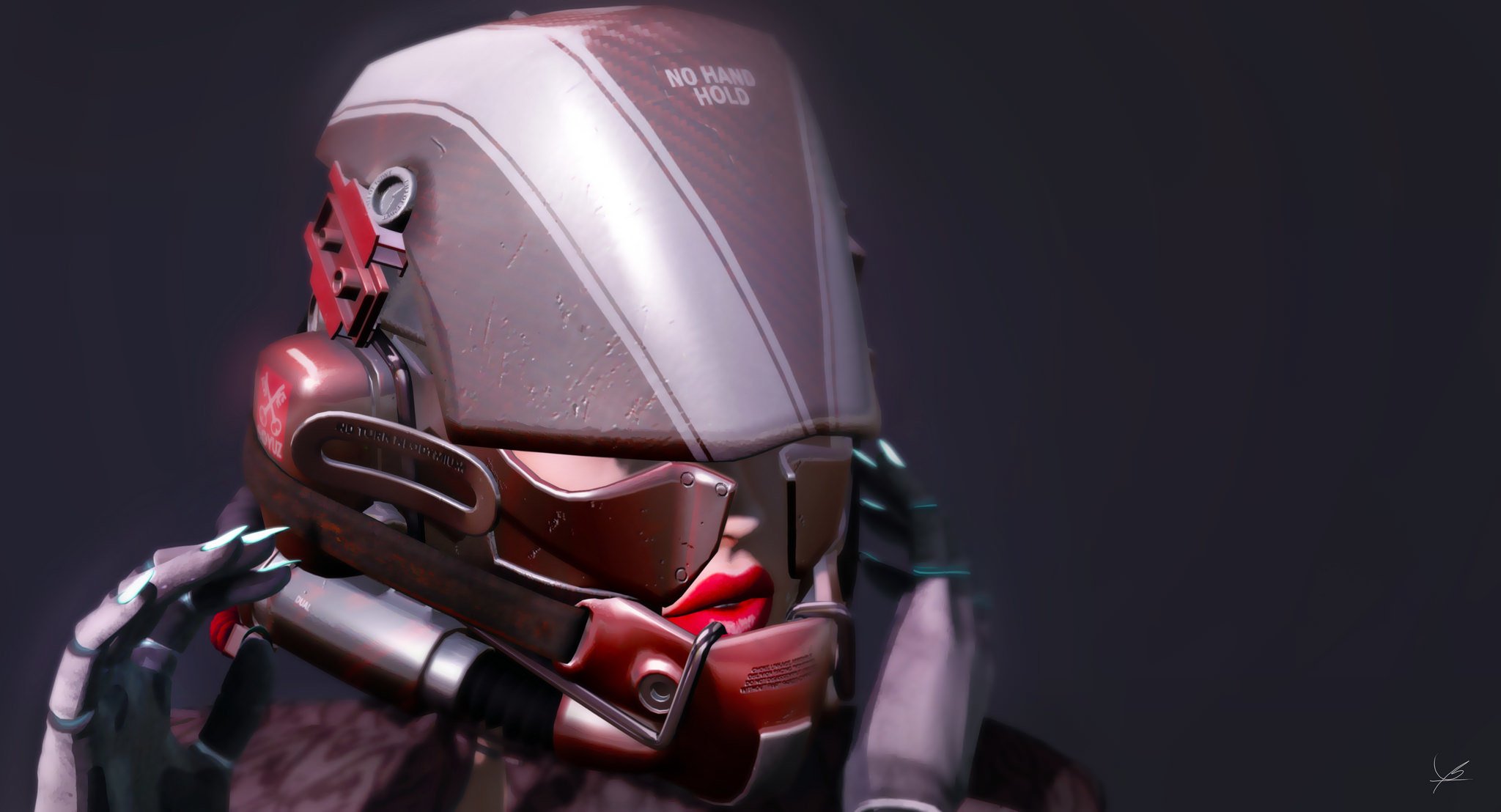 Futuriste image de la fille dans un casque avec des écouteursFuturiste image de la fille dans un casque avec des écouteurs
