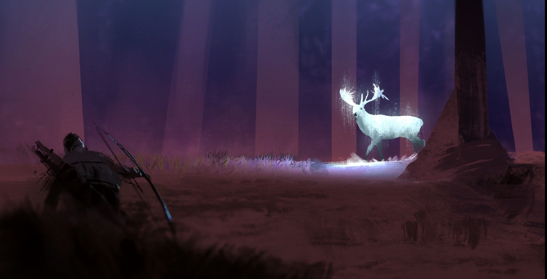 Saison de chasse. l'ours tient le cerf par les bois au-dessus de l'abîmeSaison de chasse. l'ours tient le cerf par les bois au-dessus de l'abîme