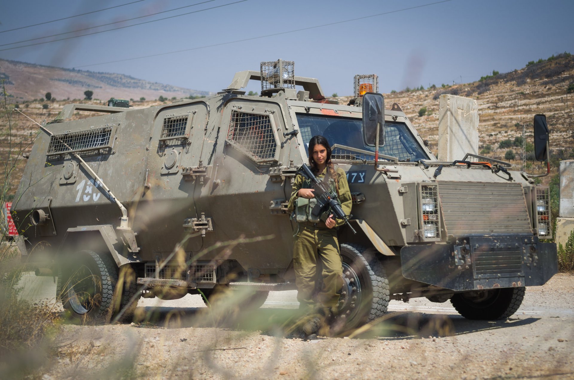 Les soldats sont assis près de la cuve avec une arme dans les mains
