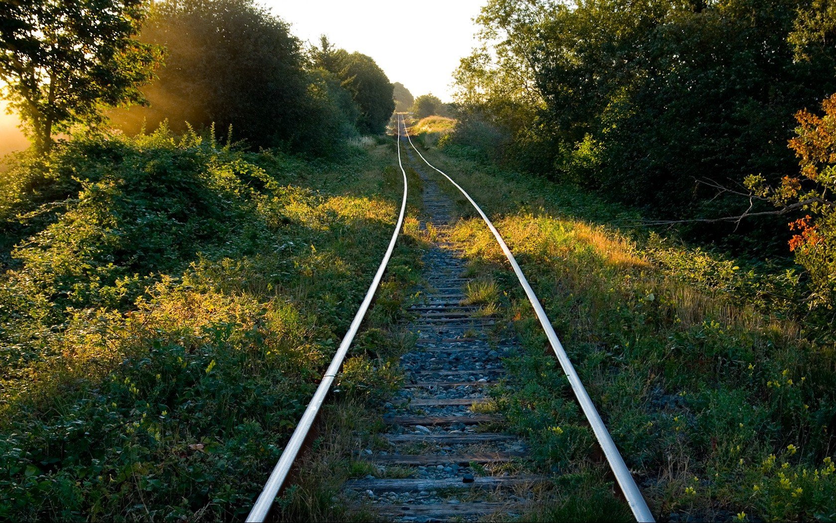 Train sur le chemin de fer sur fond de paysage de montagneTrain sur le chemin de fer sur fond de paysage de montagne
