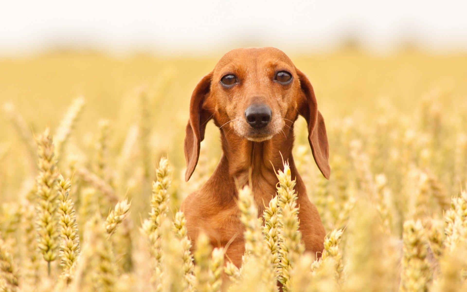 Chien mignon dans la nature sur fond d'herbe et de fleurs