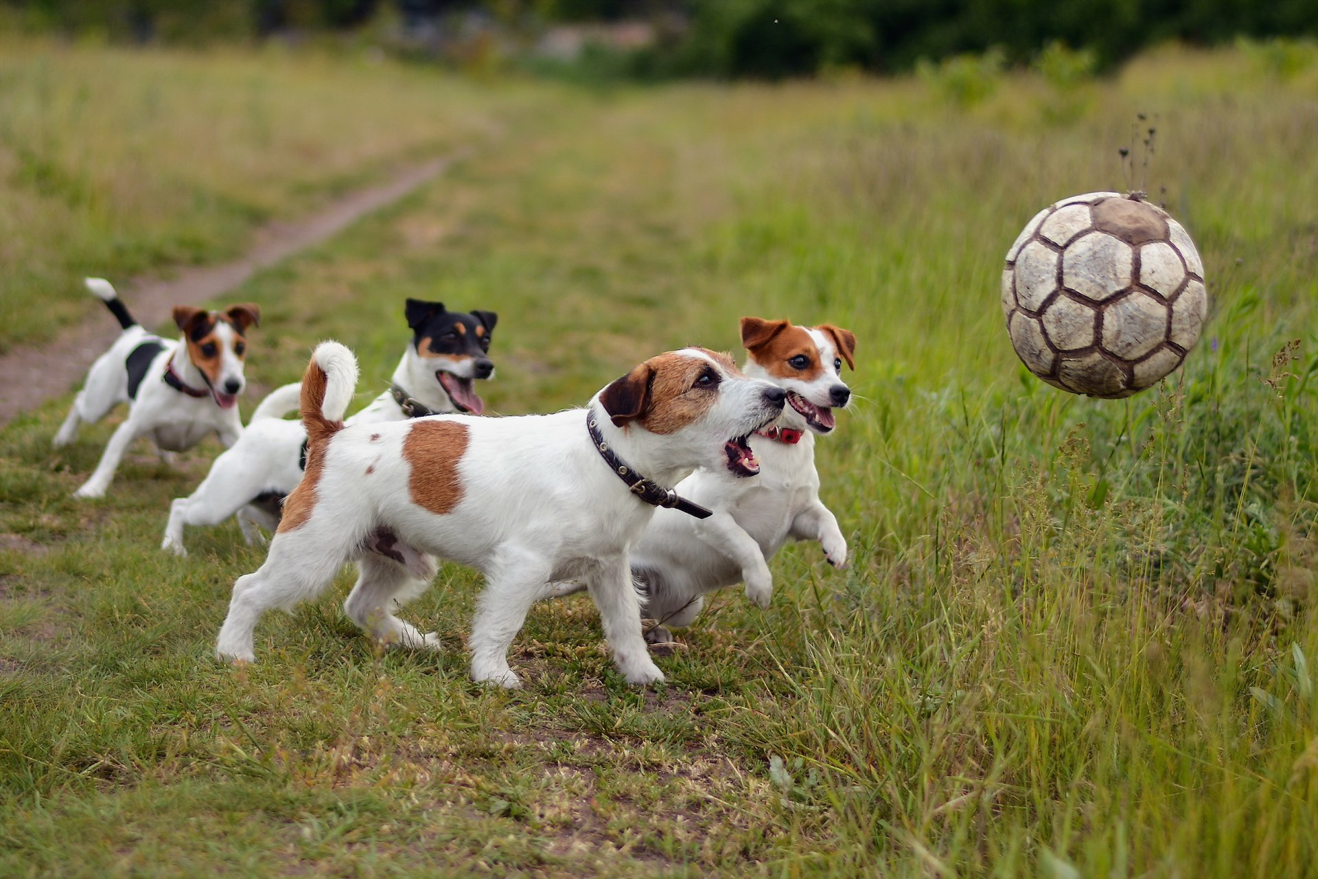 Jeu de chien sur la pelouse