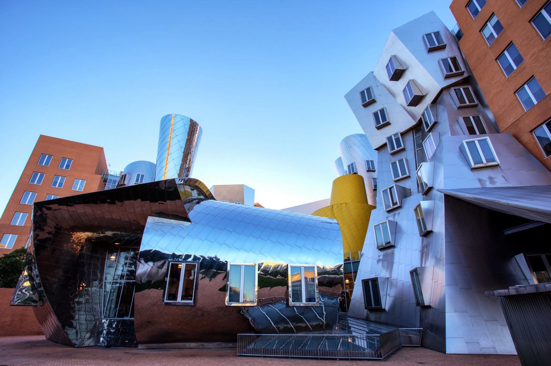 Paysage architectural avec une maison inhabituelle avec des fenêtresPaysage architectural avec une maison inhabituelle avec des fenêtres