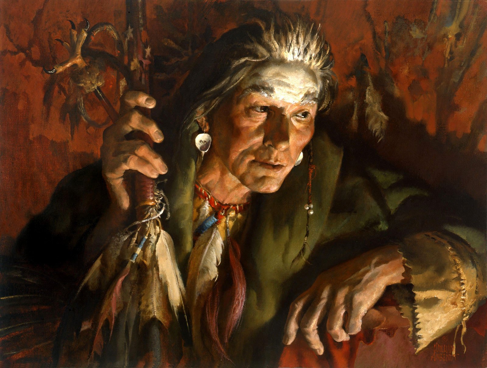 Jeune fille indienne avec une lance sur fond jauneJeune fille indienne avec une lance sur fond jaune