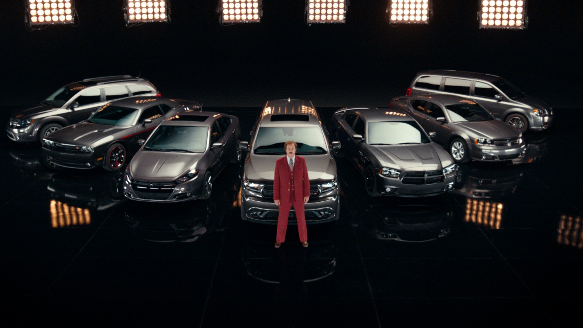 Sept voitures de la même couleur et un homme en costume rougeSept voitures de la même couleur et un homme en costume rouge