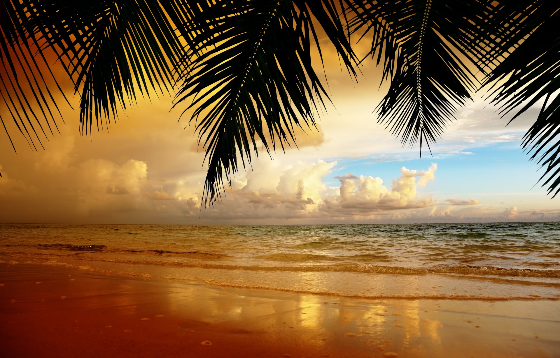 Côte de la mer sous les tropiques sur fond de coucher de soleilCôte de la mer sous les tropiques sur fond de coucher de soleil