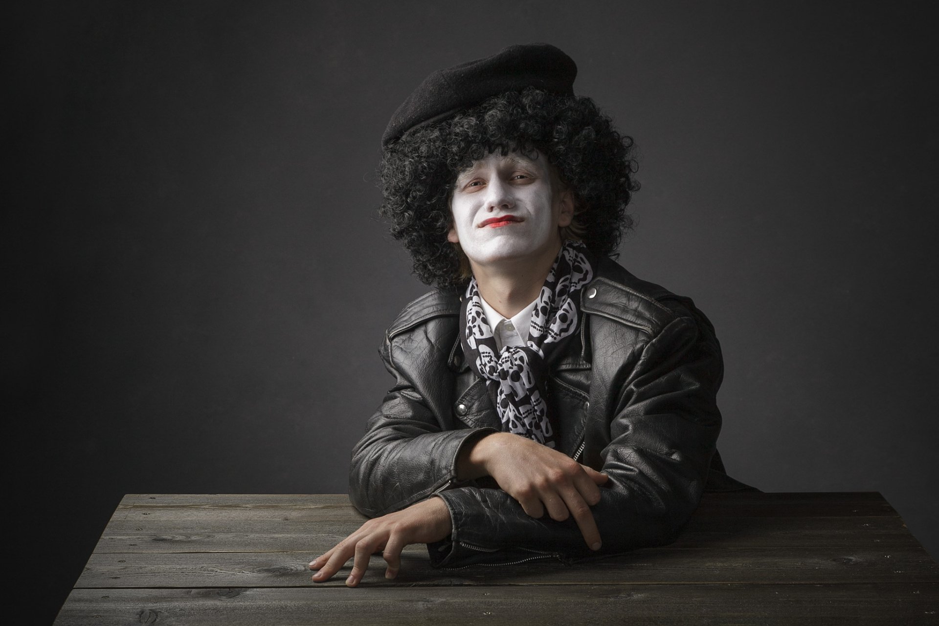 Portrait d'une jeune fille au chapeau. dans les cheveux est tissé de fumée et de feuilles d'automnePortrait d'une jeune fille au chapeau. dans les cheveux est tissé de fumée et de feuilles d'automne