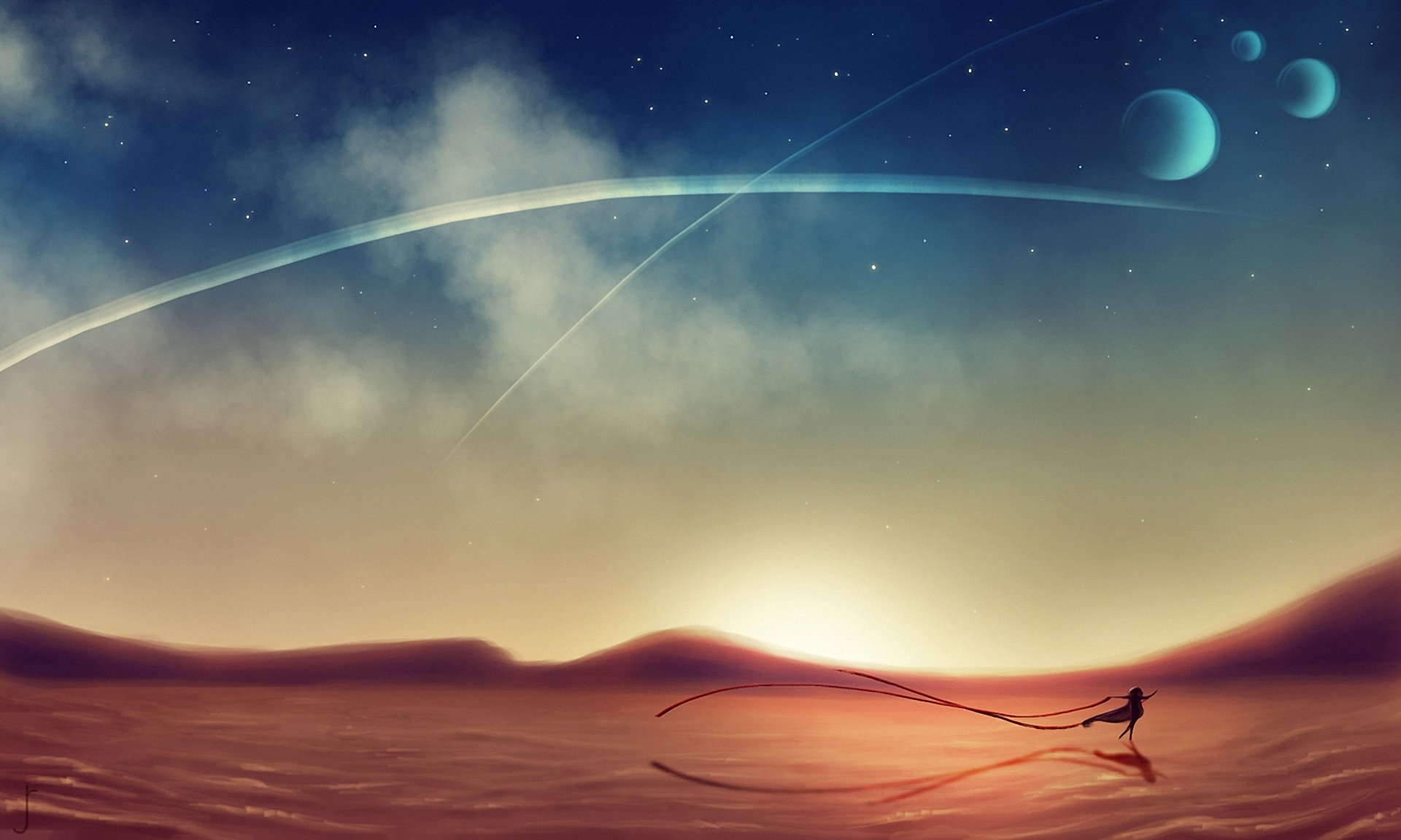 Art de la danse d'une belle fille sur une planète déserteArt de la danse d'une belle fille sur une planète déserte