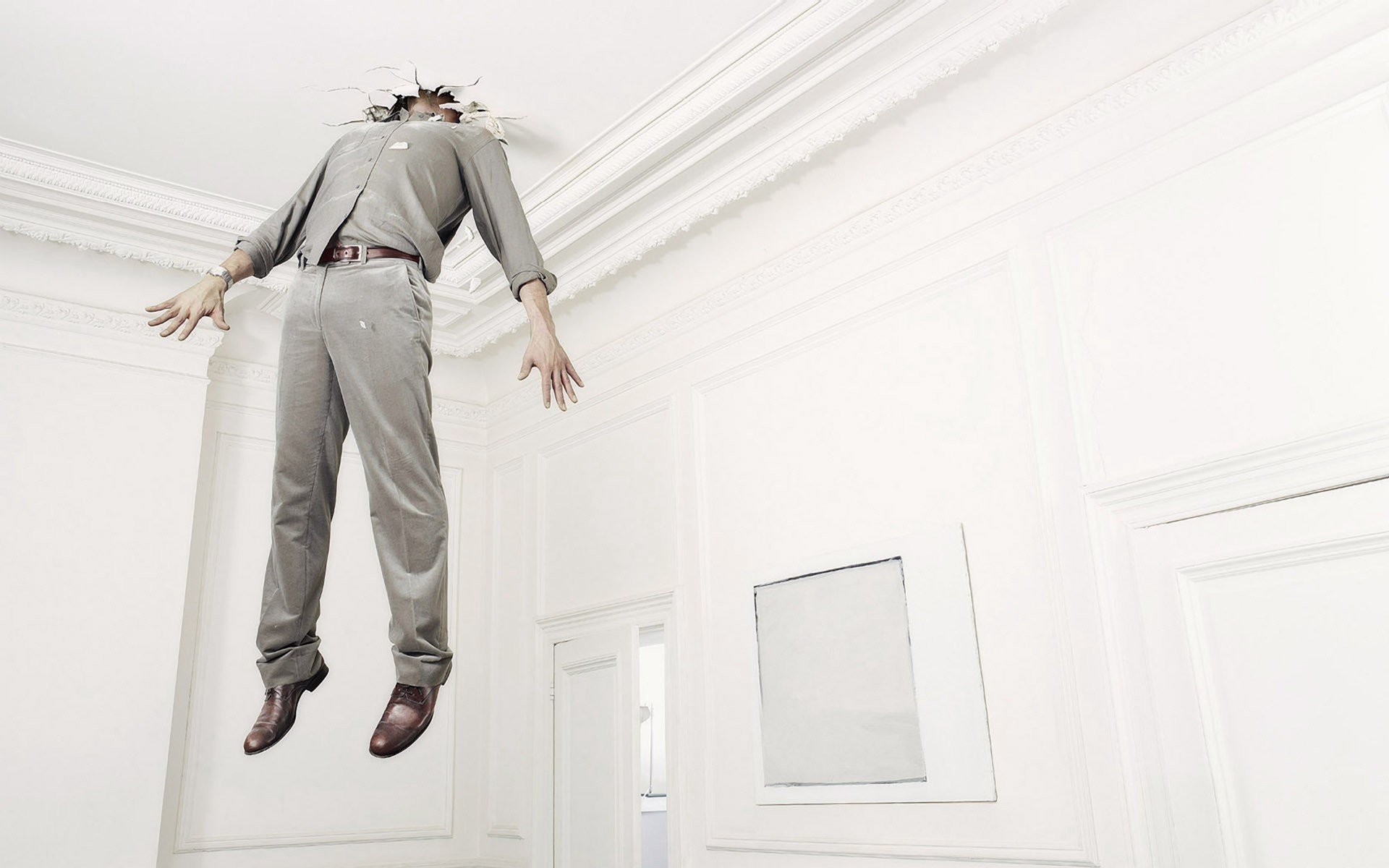 Un homme frappé de la tête un trou dans le plafondUn homme frappé de la tête un trou dans le plafond