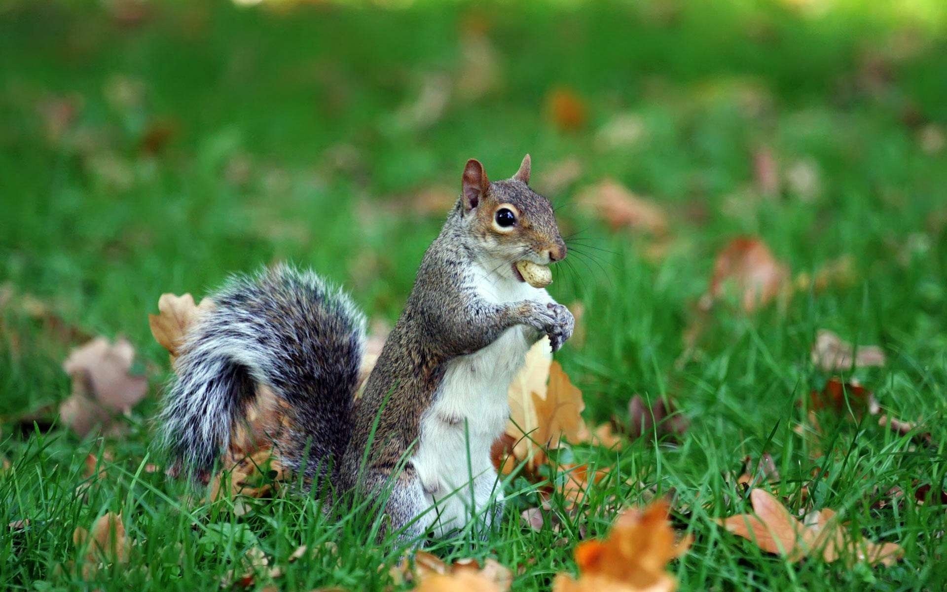 Écureuil dans les feuilles de la forêt et de l'herbe
