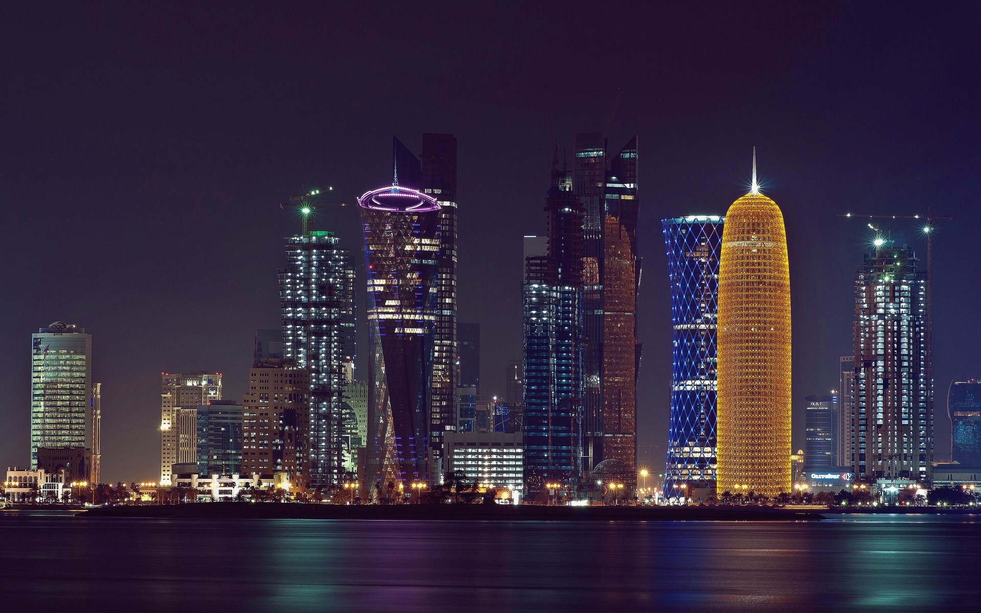 Grands gratte-ciel dans les lumières de la lumière des fenêtres