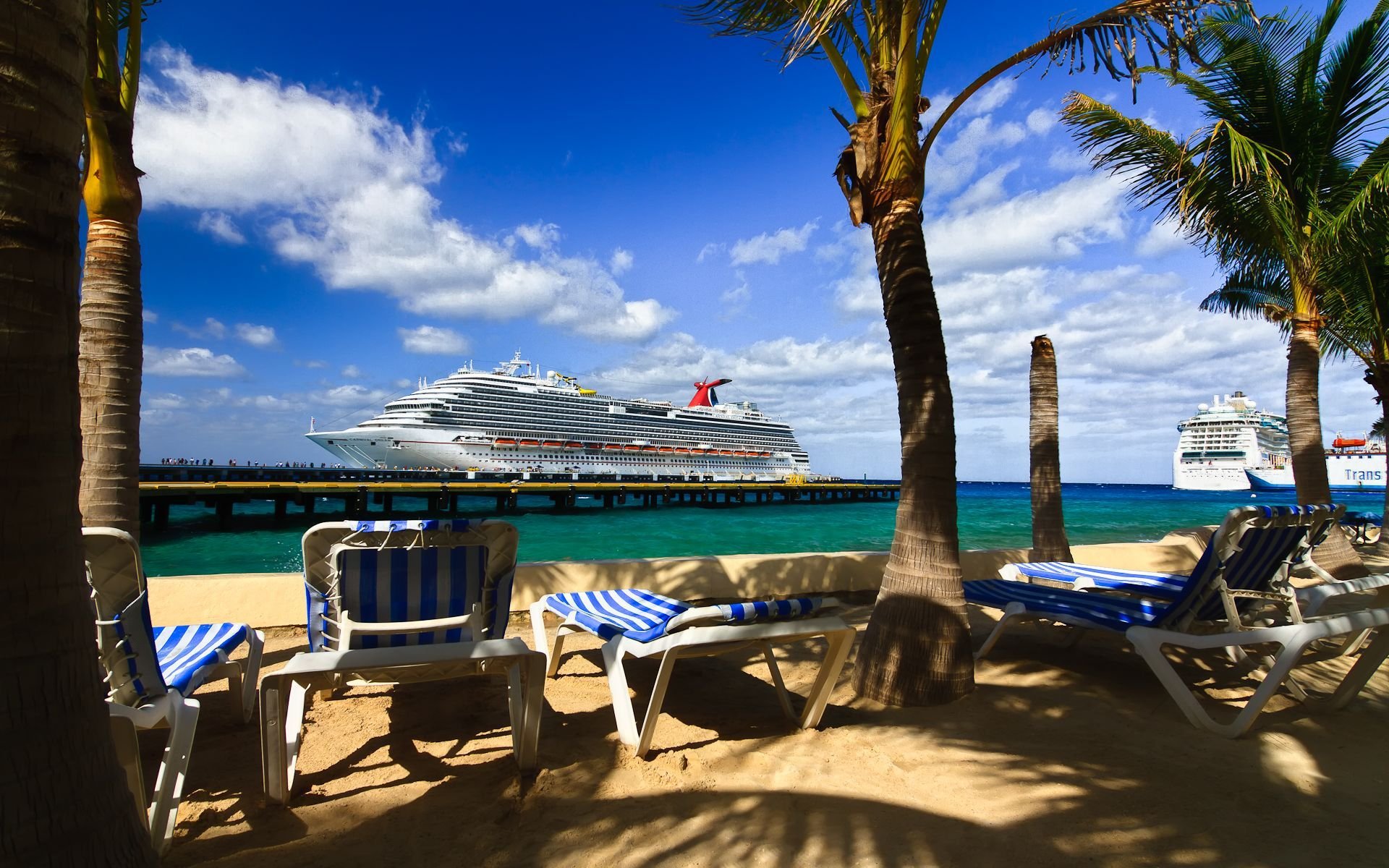 Île tropicale dans l'océan avec des palmiers au-dessus de l'eau, ciel clair et les rayons du soleilÎle tropicale dans l'océan avec des palmiers au-dessus de l'eau, ciel clair et les rayons du soleil